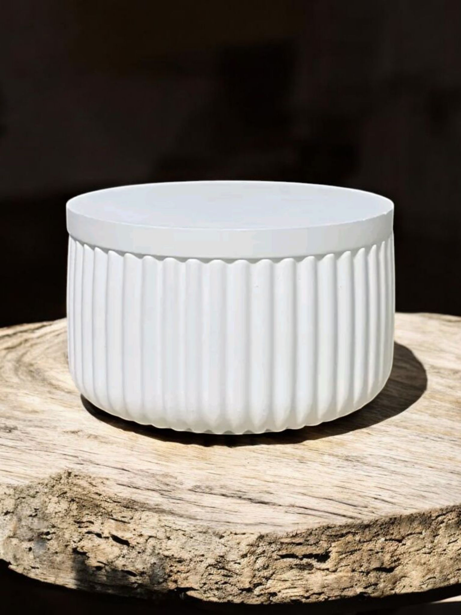 Diese stilvolle Aufbewahrungsdose aus Keramik vereint minimalistisches Design mit praktischer Funktion. Mit ihrer feinen Rillenstruktur und dem matten Weißton passt sie perfekt in jedes moderne Zuhause – ob im Badezimmer, Schlafzimmer, Wohnzimmer oder Flur.
