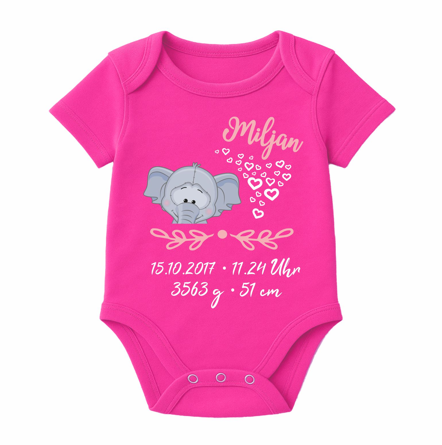 Baby Body kurz CUTE FUCHS personalisiert mit Geburtsdaten+Name