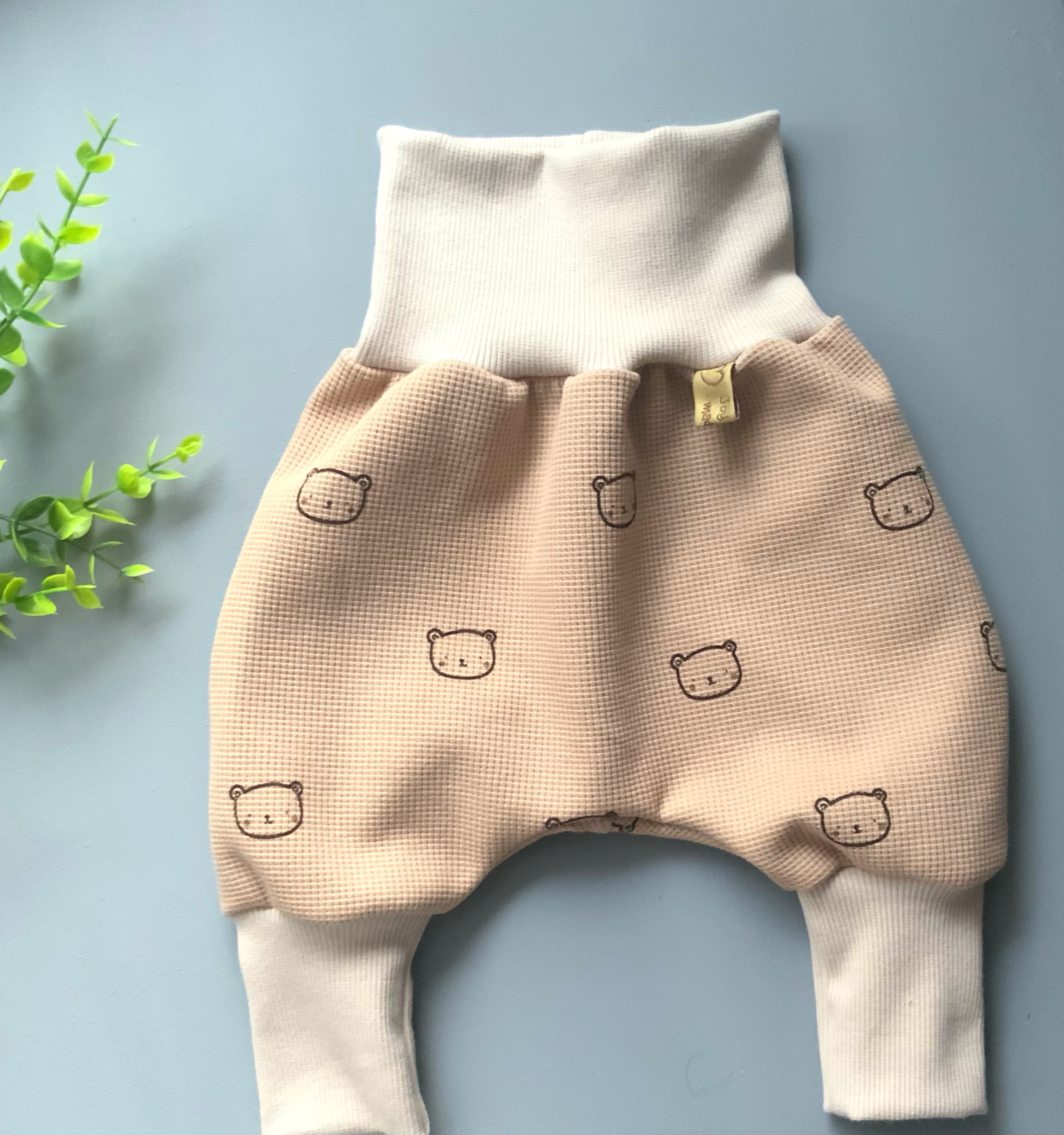Pumphose beige mit weichem Waffeljersey mit Bärchen