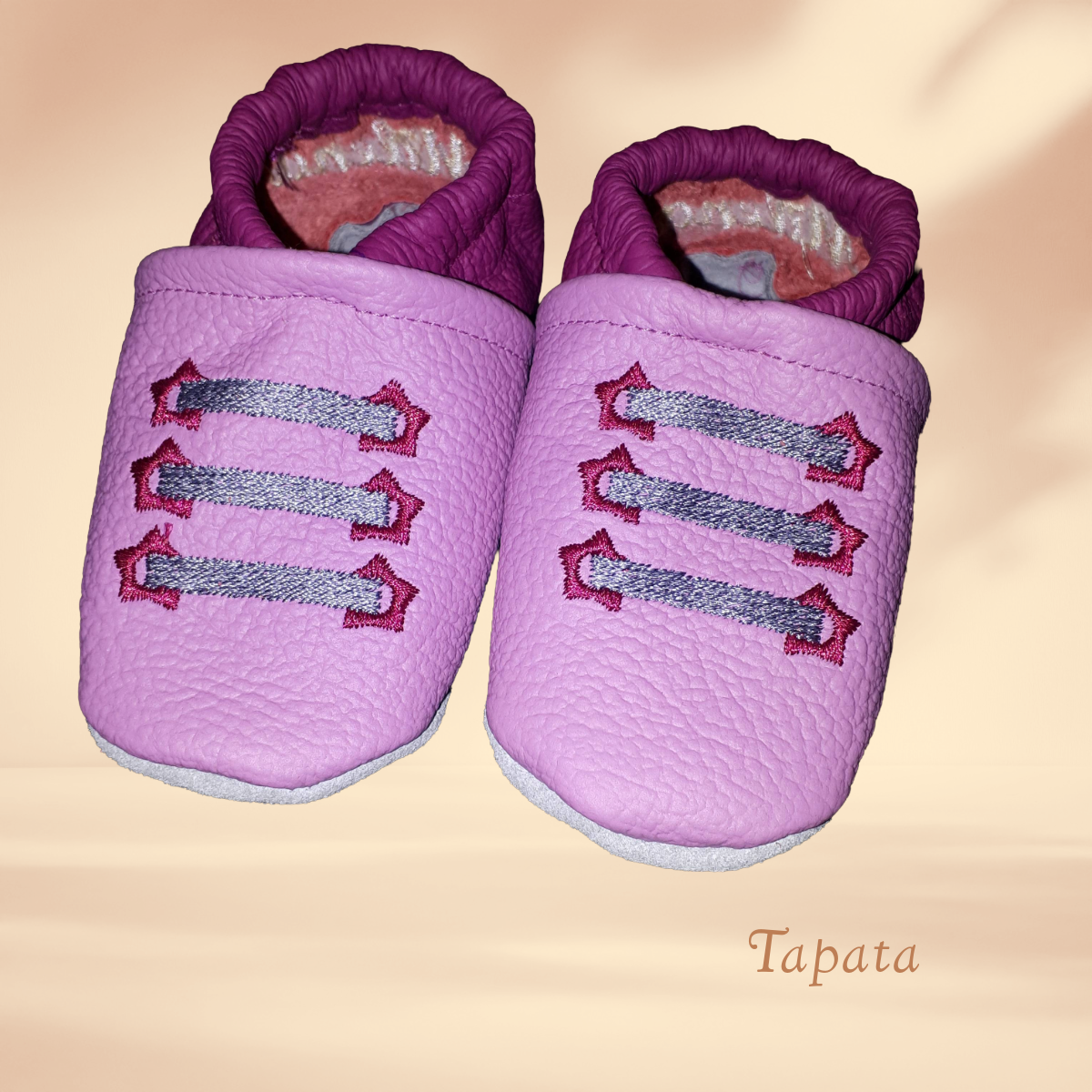 ➡ Angeboten werden handgenähte Krabbelschuhe, ideal für die Kita, daheim oder als schönes Geschenk für besondere Anlässe, wie zur Geburt, Taufe oder zum Kindergeburtstag.