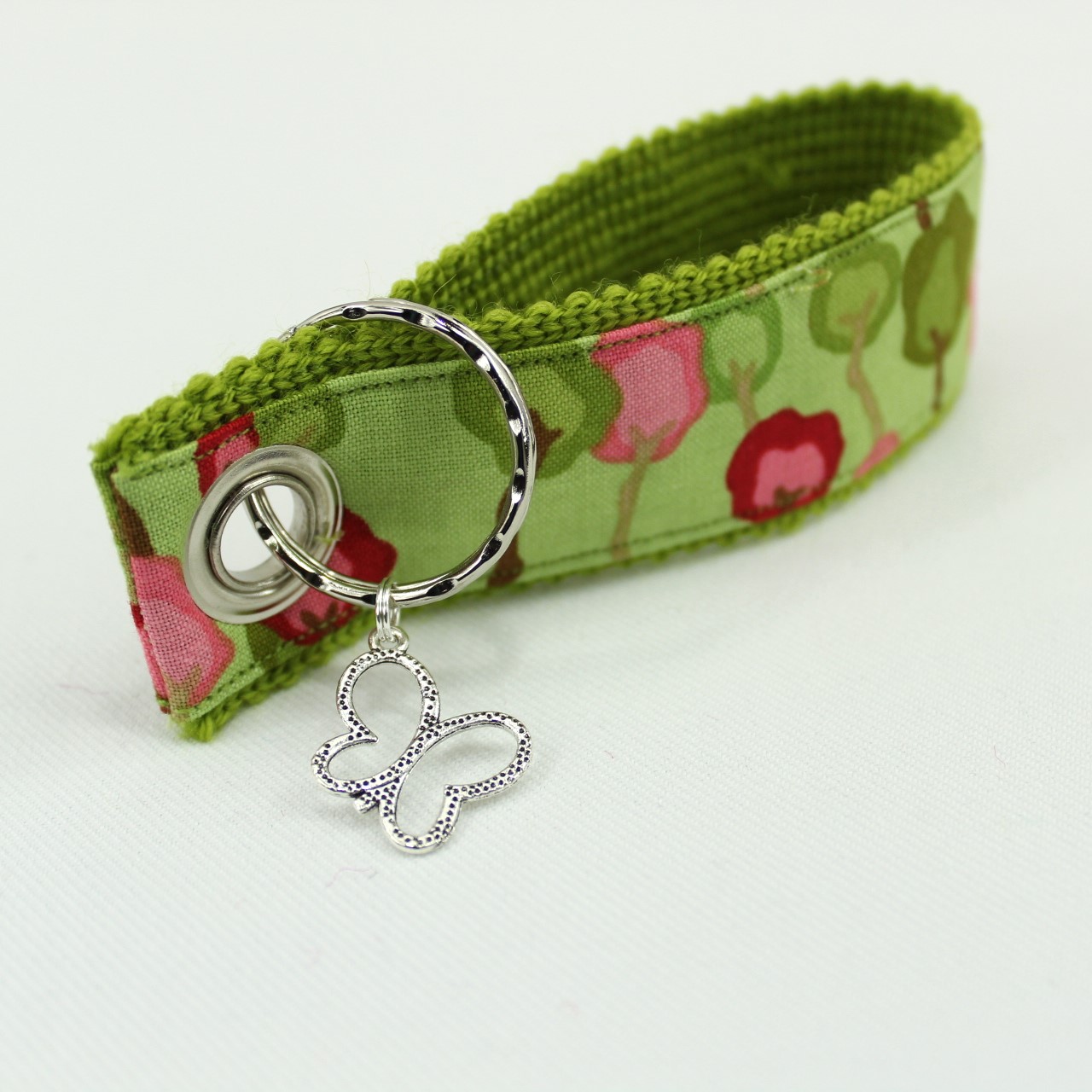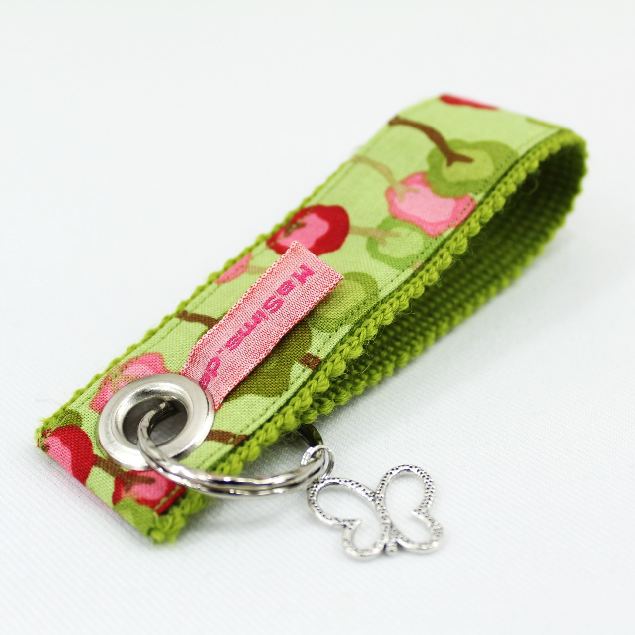 Dies ist eine Serie mit Schlüssel - Anhängern die so individuell in Muster und Farbe sind, wie die Persönlichkeit der Trägerin. Die Farben sind von dunkel bis hell, dezent, farbenfroh, knallig, natürlich von groß bis klein gemustert, von romantisch bis grafisch. Anhänger: entweder Engel, Blumen, Kreuz, Herz, Blatt, Katze, Mandala, Pfote, Delphin, Schlüssel, Glückklee, Schmettering, Pferd, Glas. Alle Bänder sind auf einem Innenband aus reiner Schurwolle gearbeitet.
