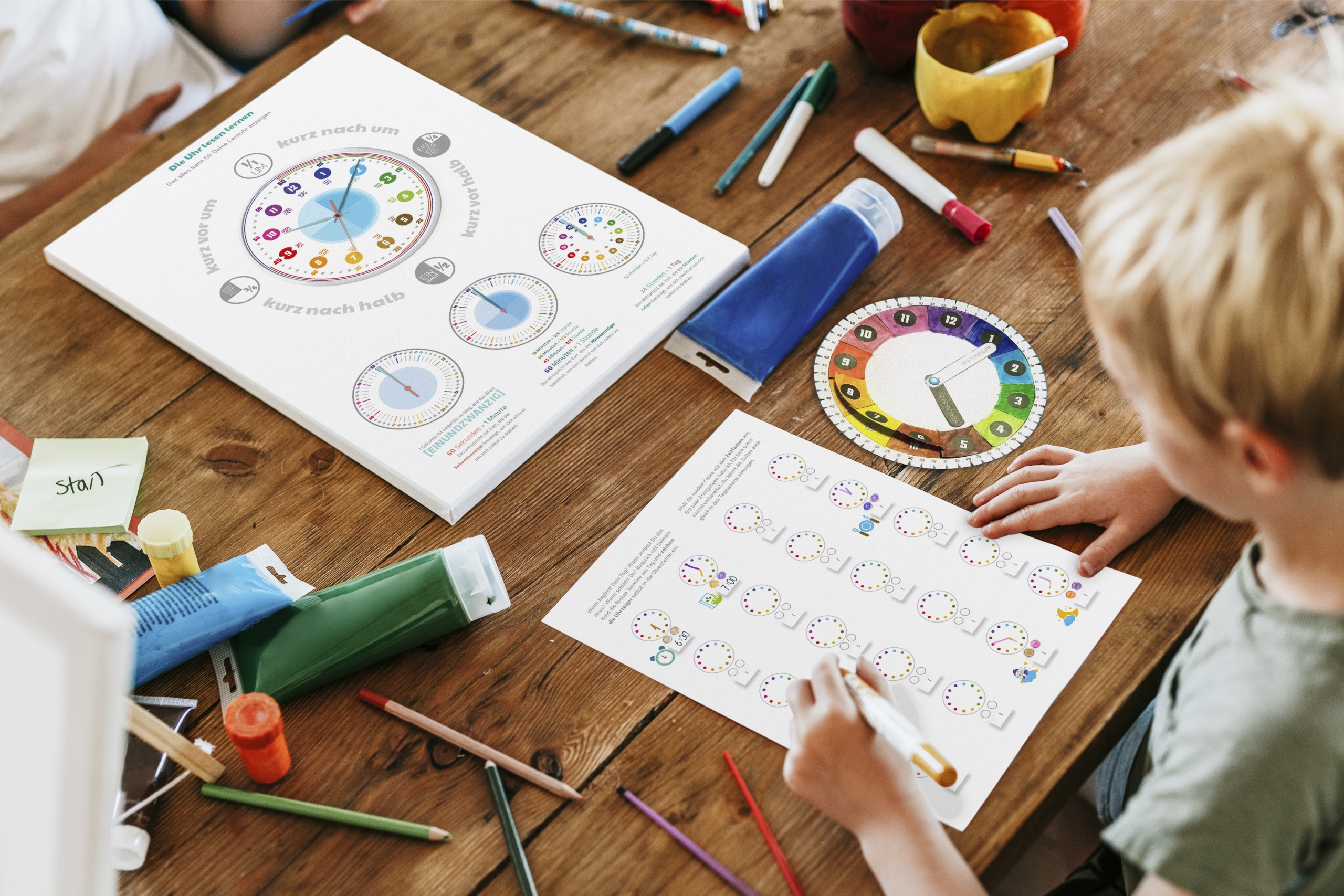 Spielerisch Uhrzeit lernen mit Farben – inkl. Lernstufen