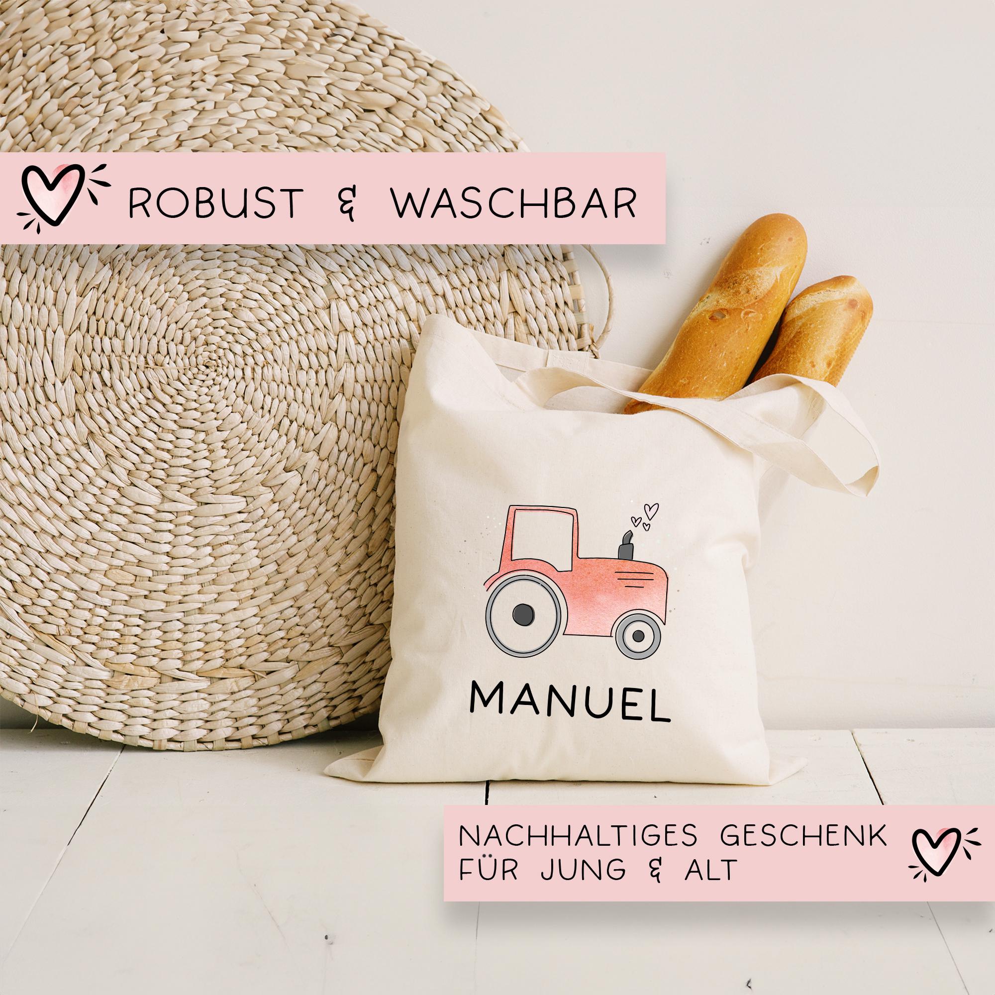 Baumwolltasche Traktor Rot Stofftasche Name - Kinder Beutel Jutetasche Kindertasche & Wunschname - Wechselwäsche - Tragetasche - Jutebeutel