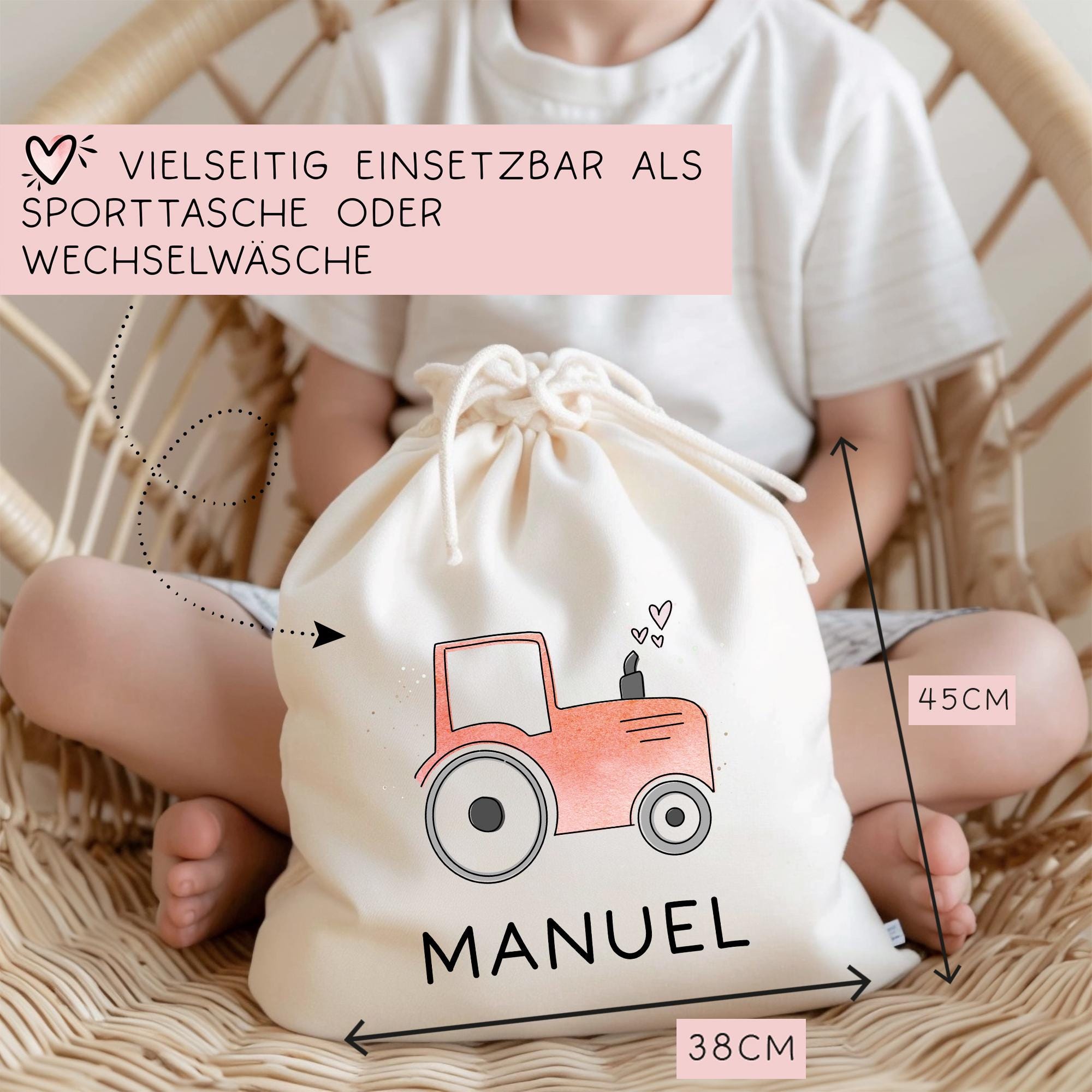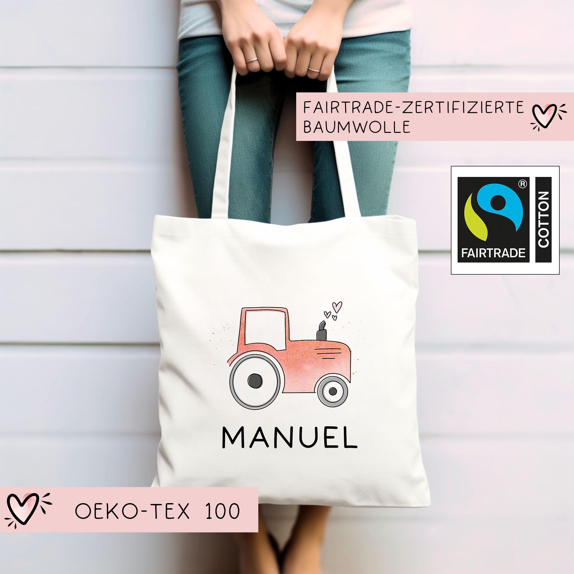 Eine Stofftasche mit einen süßen Roten Traktor oder Trecker sowie den Wunschnamen ist der perfekte Begleiter für Kinder in Kita, Schule und Kindergarten. Diese vielseitige Tasche kann als Sporttasche, Tragetasche oder für Wechselwäsche verwendet werden.