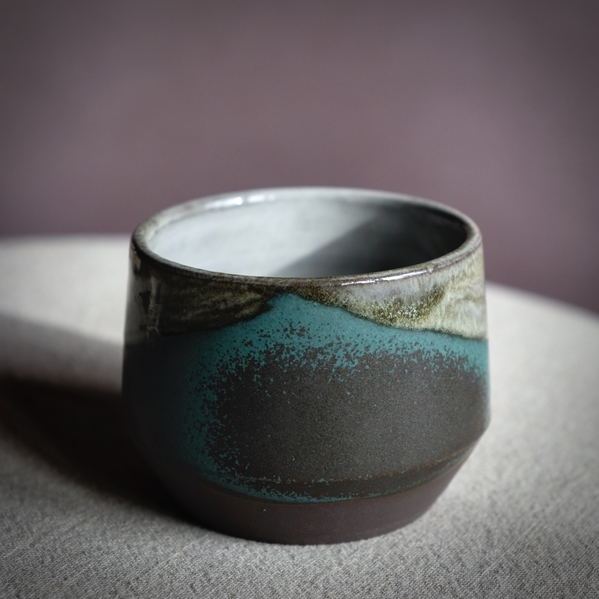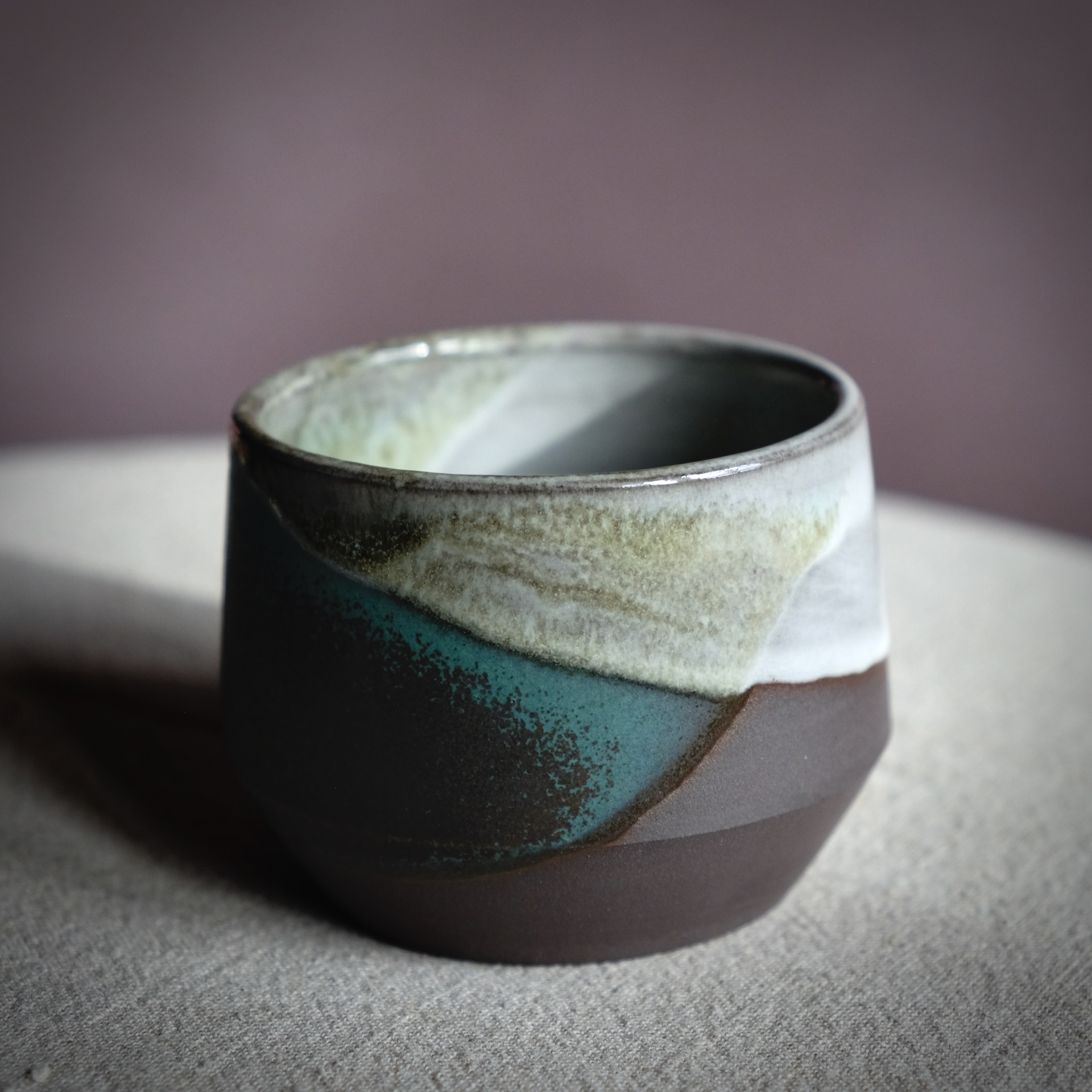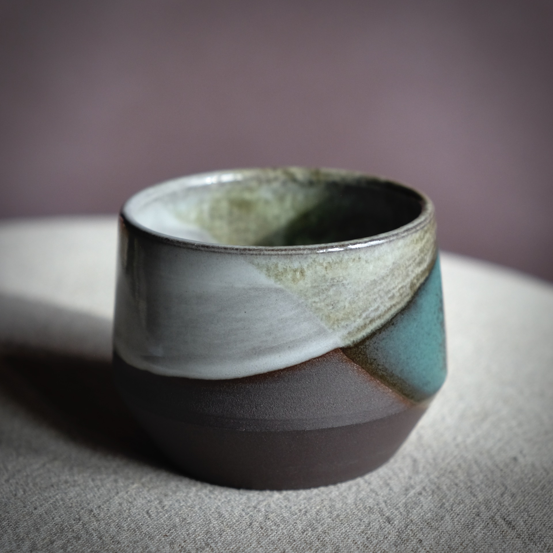 Gedreht an der Töpferscheibe und gebrannt bei ca. 1200-1230C.