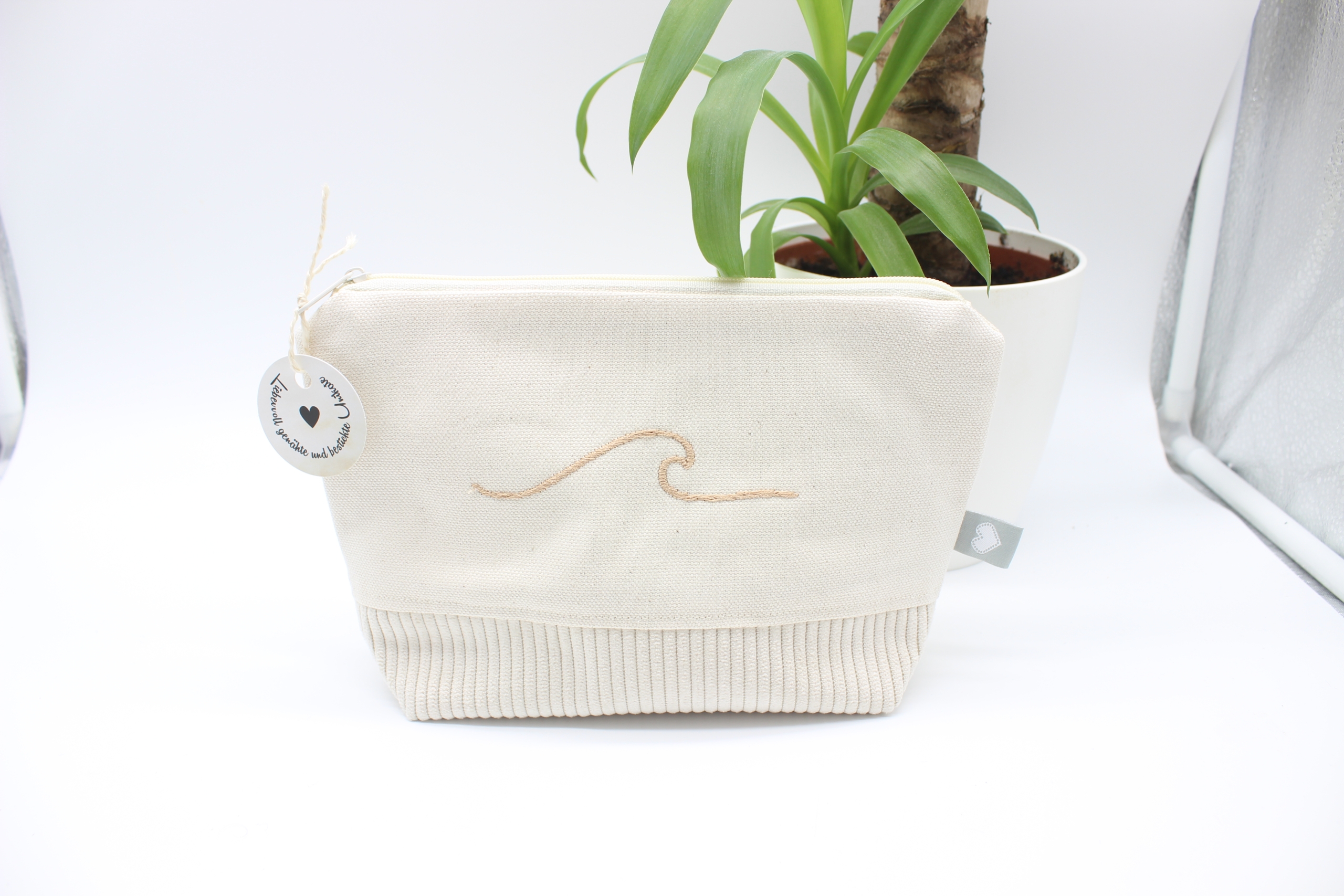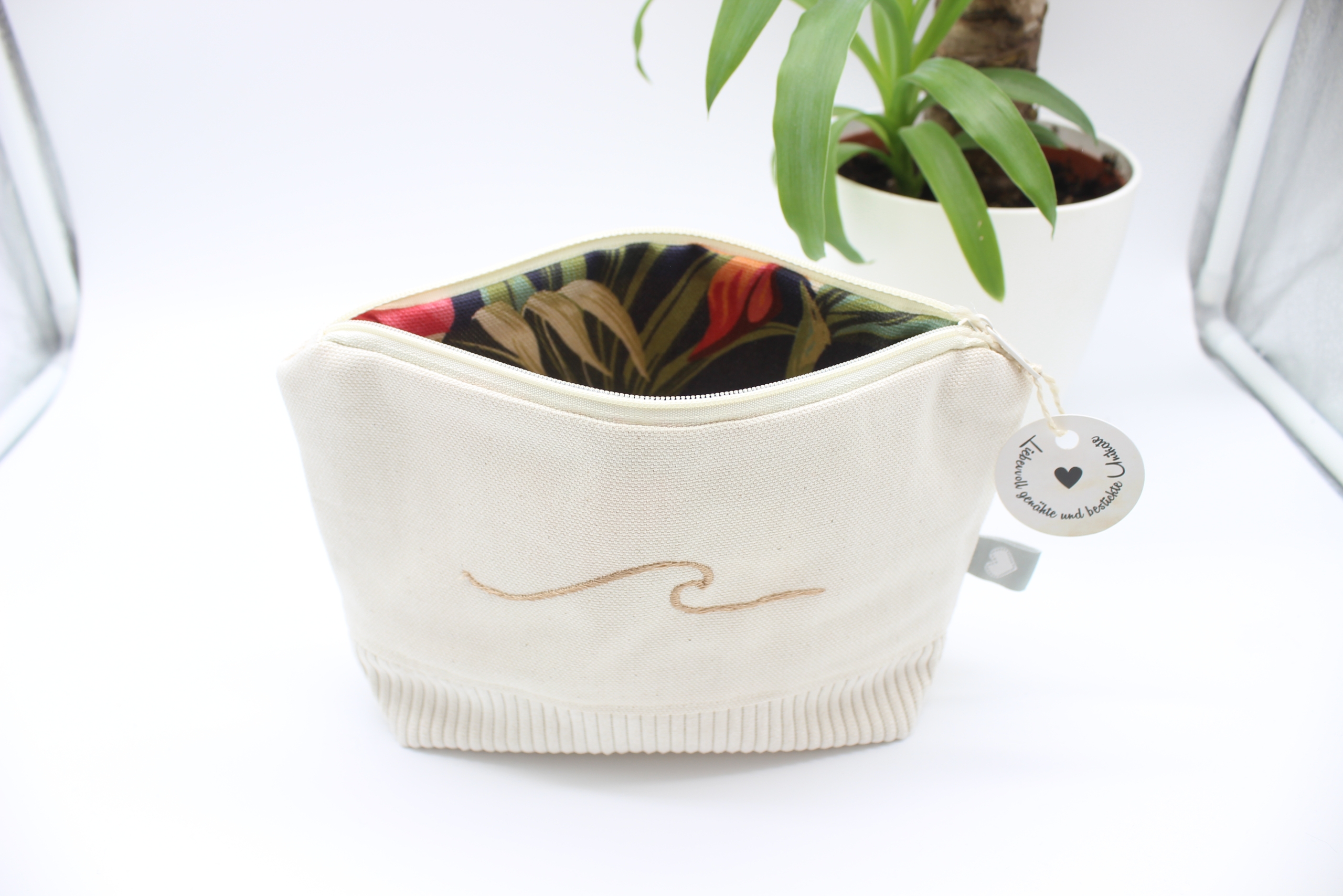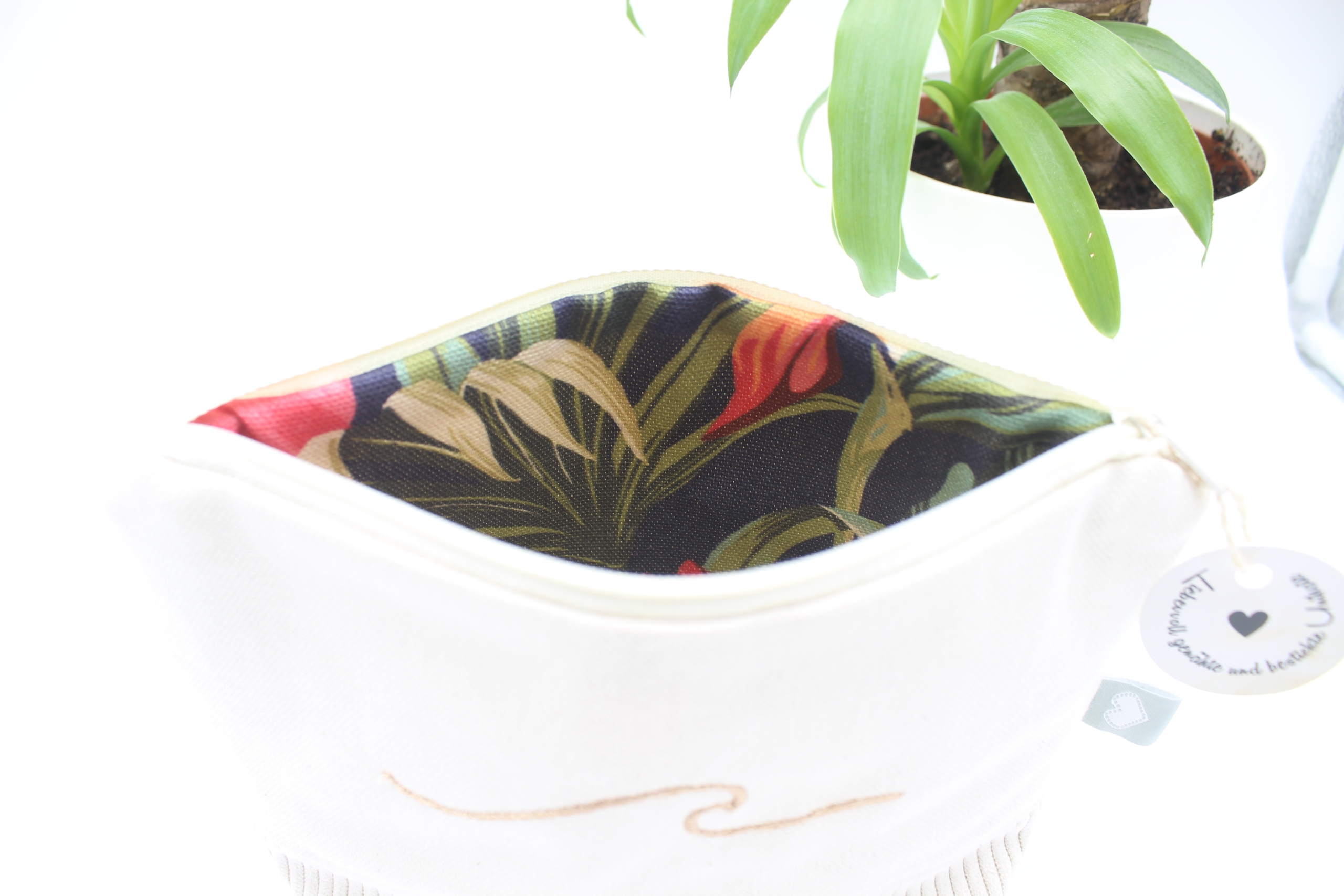 Diese selbstgenähte und bestickte Universal-/Kosmetiktasche vereint Funktionalität mit liebevoller Handarbeit.