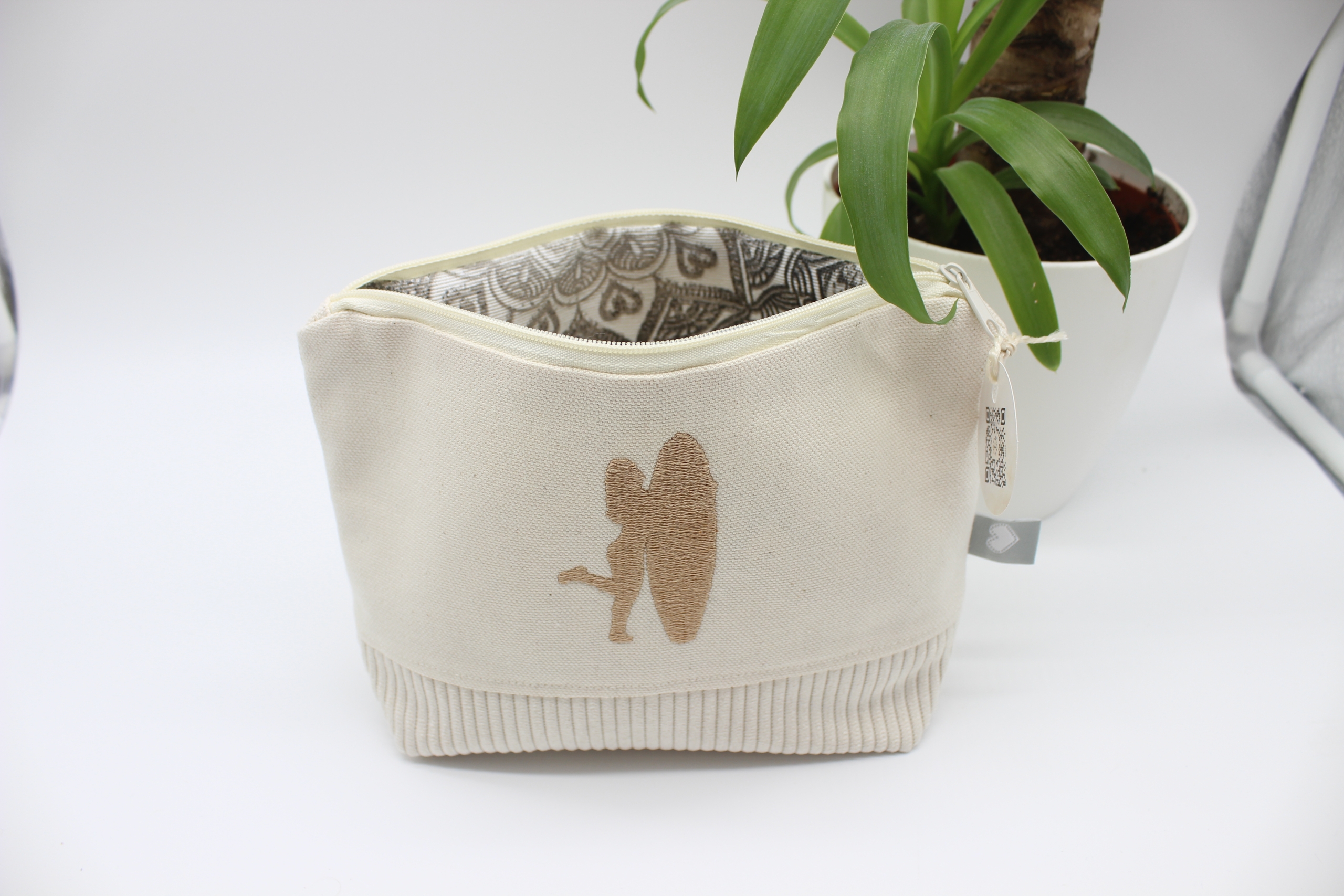 Die Kombination aus hochwertigen Materialien wie Canvas und Cord sorgt für Stabilität, eine angenehme Haptik und einen langlebigen Begleiter im Alltag. Die feine Bestickung verleiht der Tasche eine besondere, persönliche Note und macht sie zu einem echten Blickfang.
