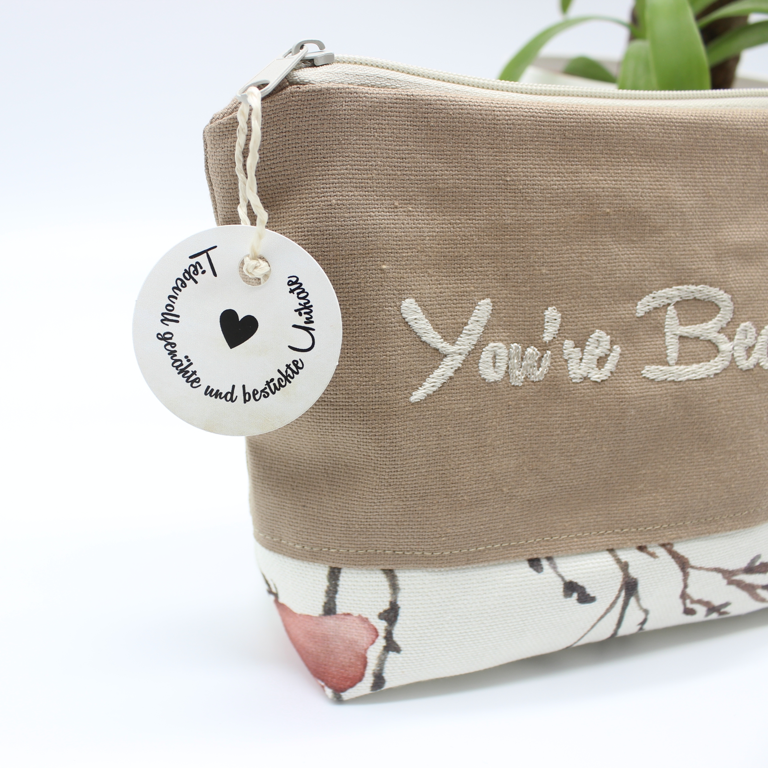 Universal-/Kosmetiktasche bestickt Herzensmensch Geschenkidee
