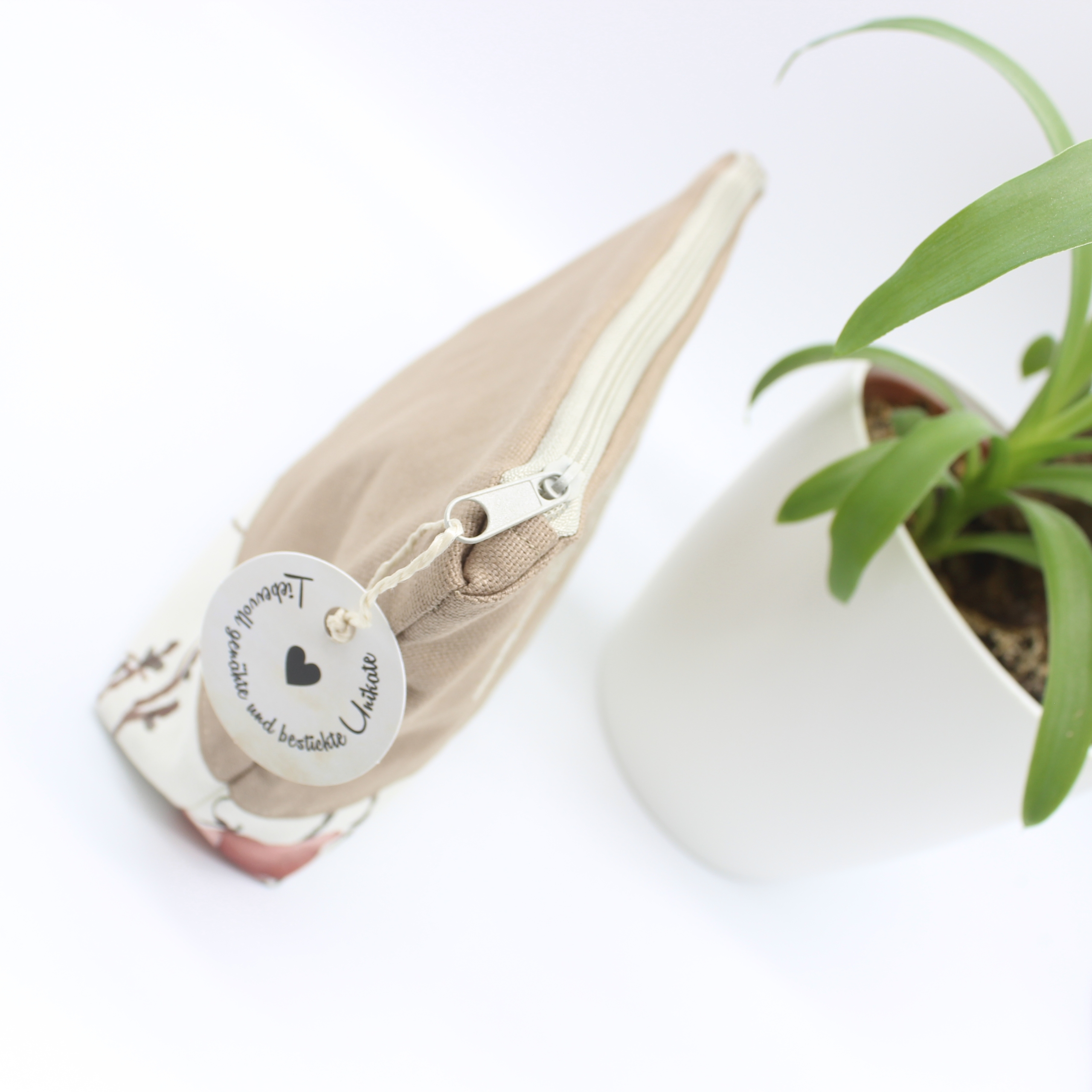 Mäppchen Universaltasche Blätter Grau Beige Weiß Unikat