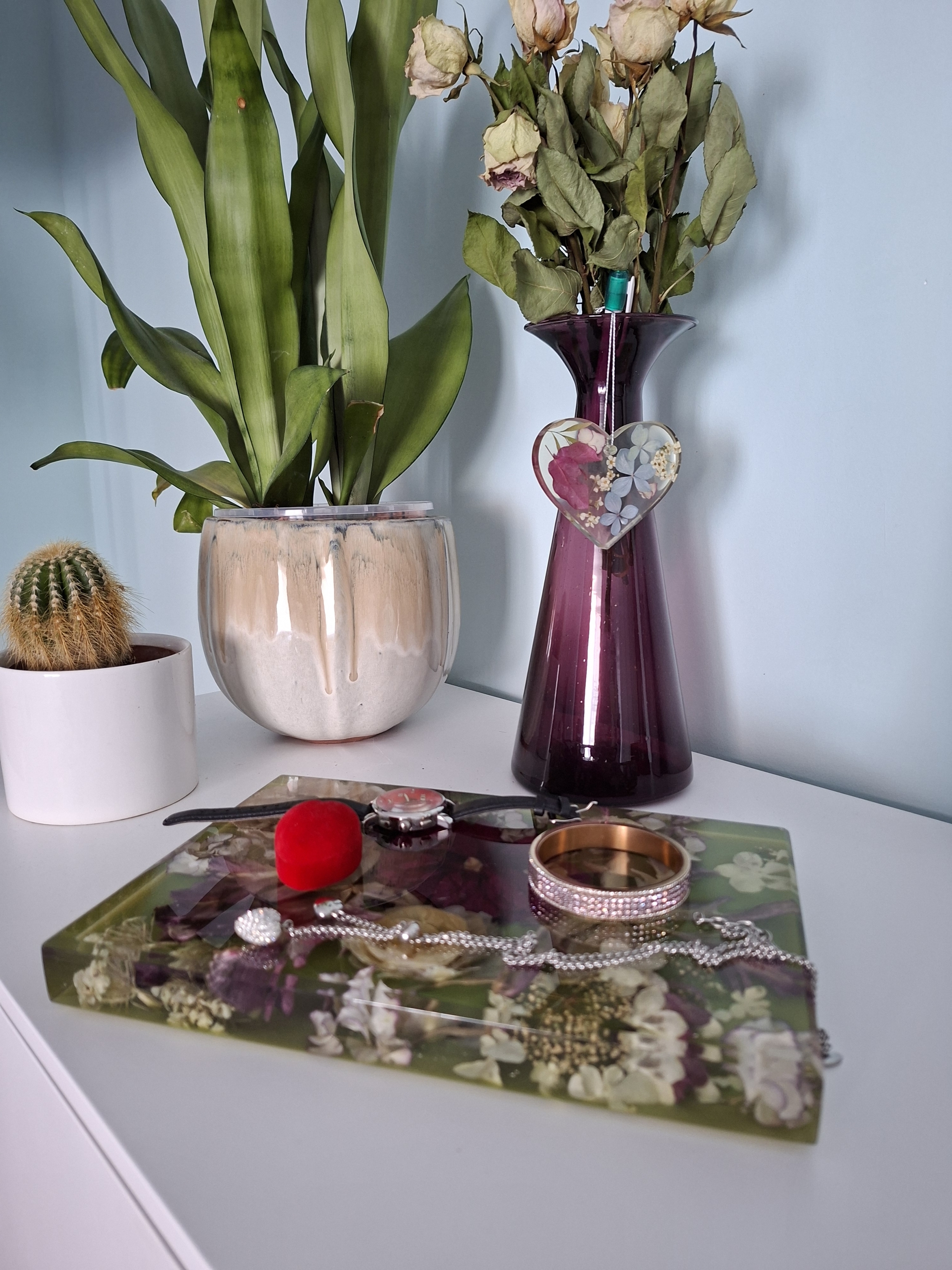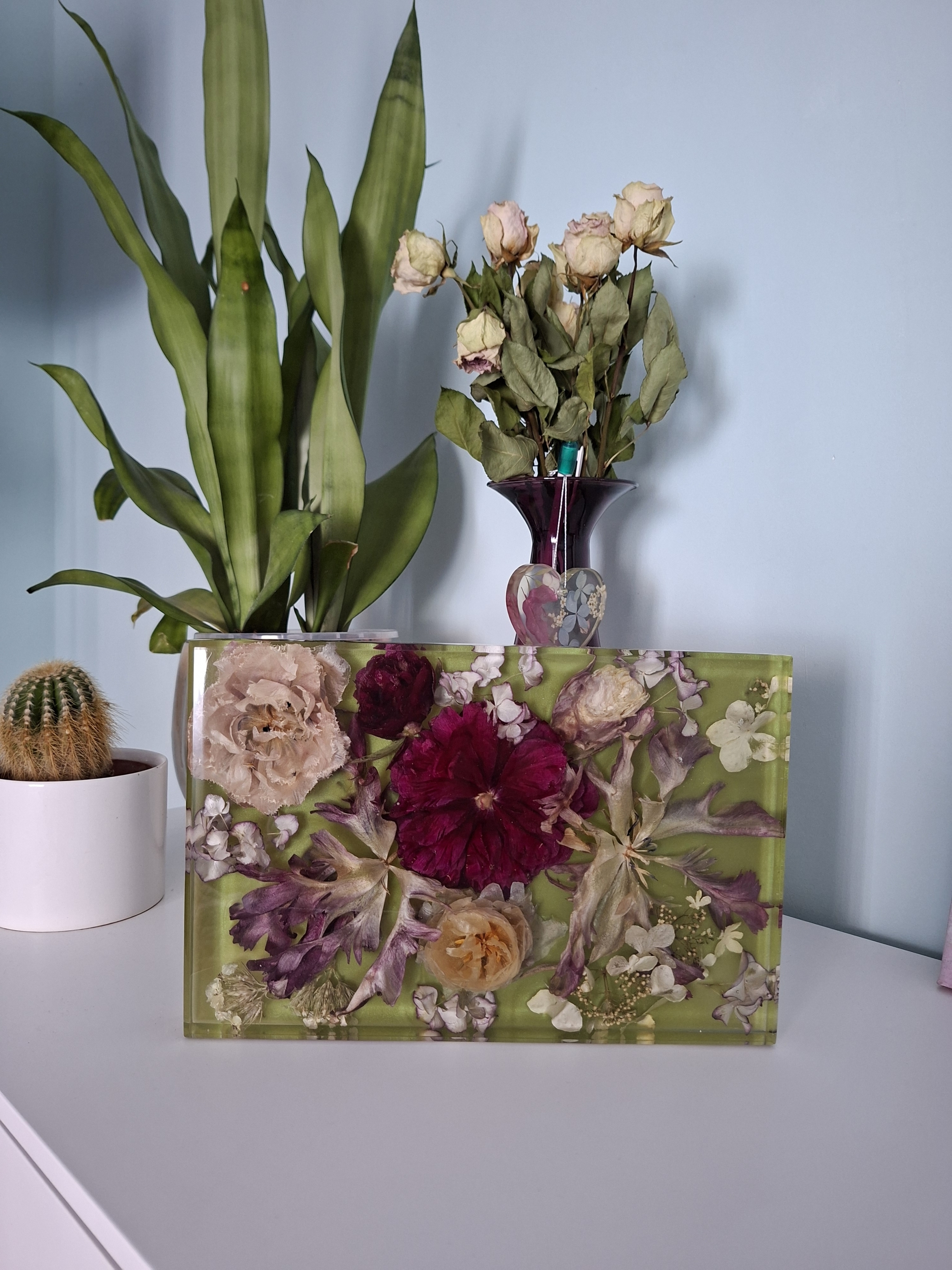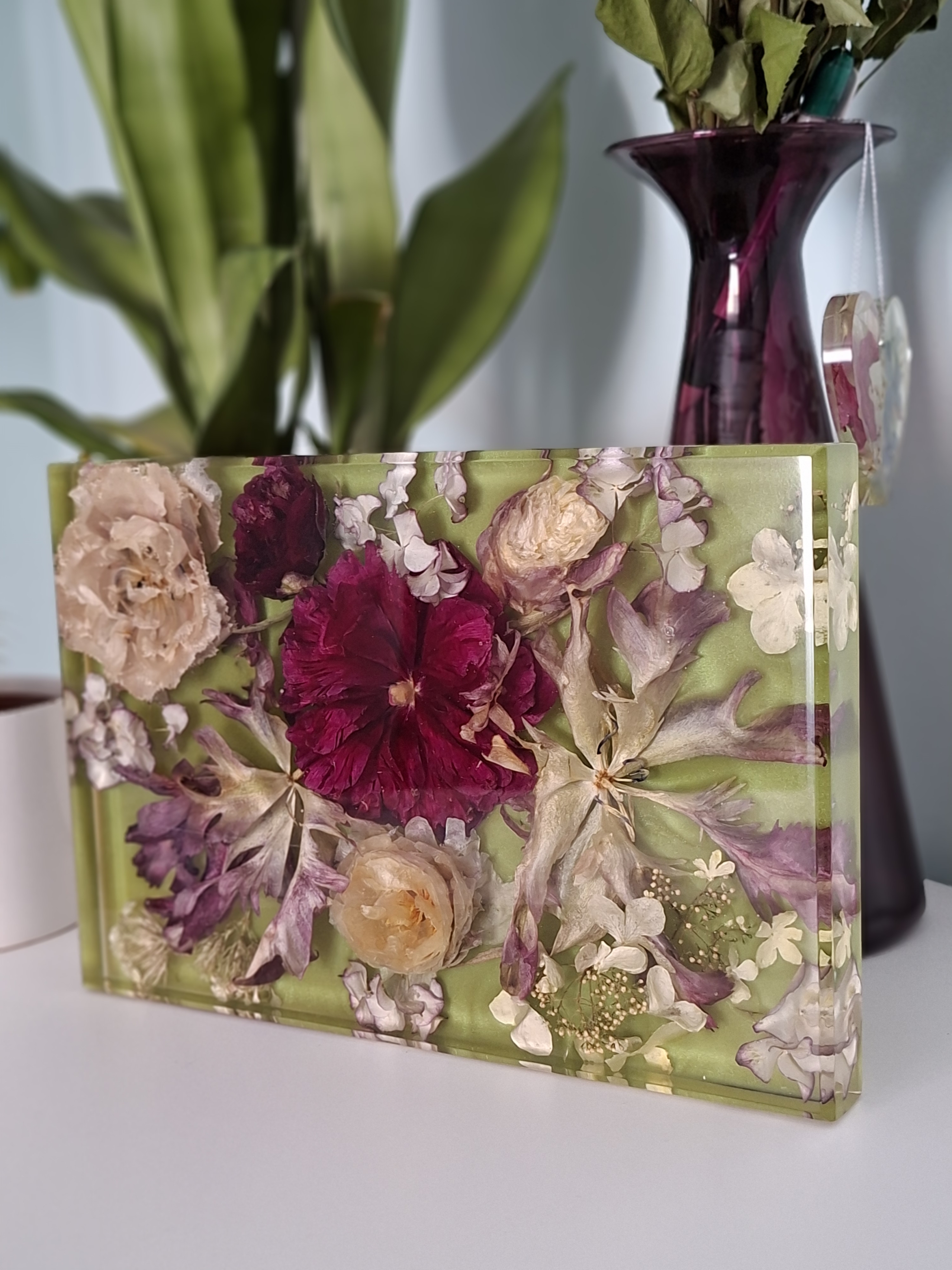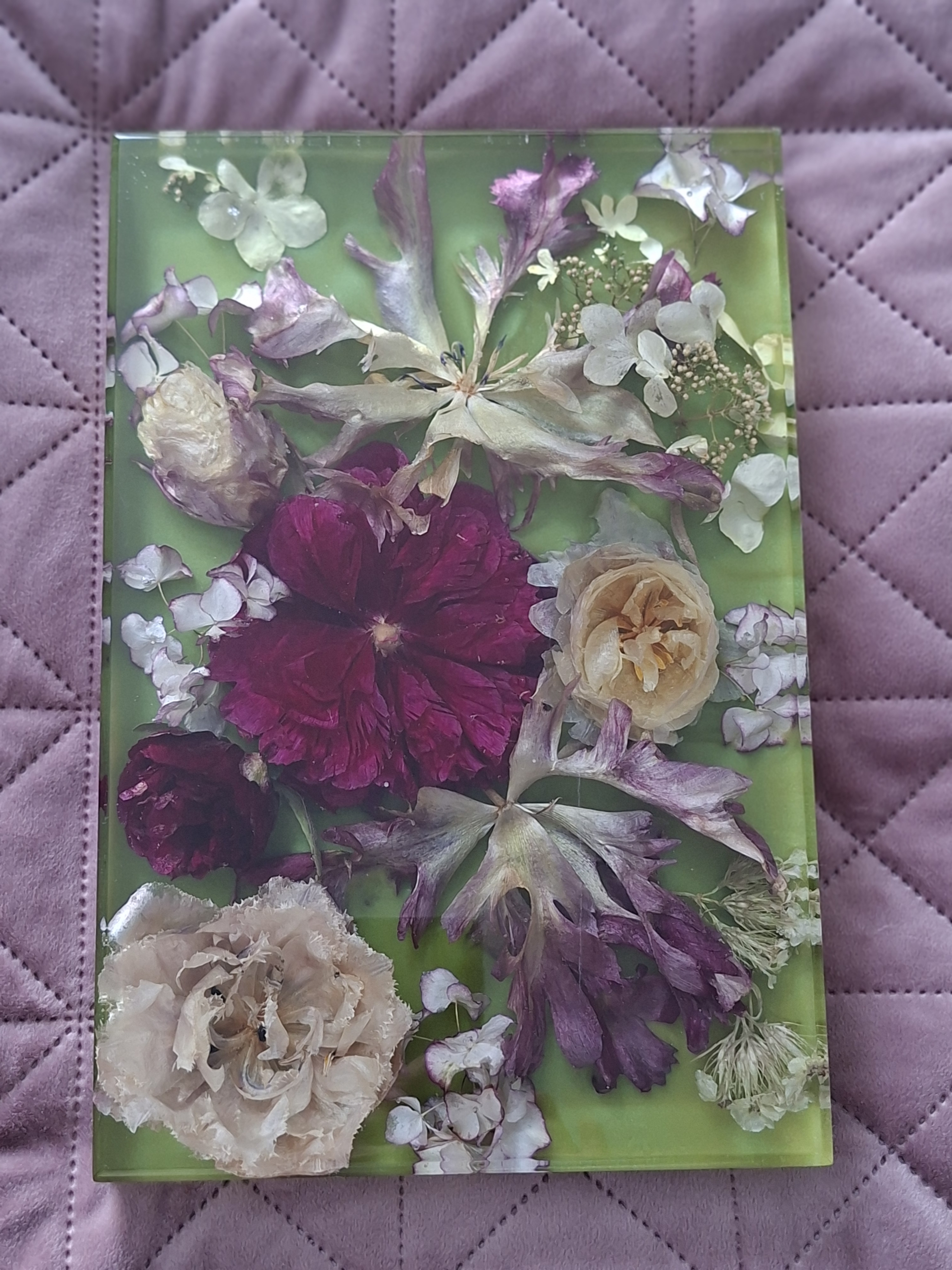 Echte getrocknete Blumen in Epoxidharz eingegossen