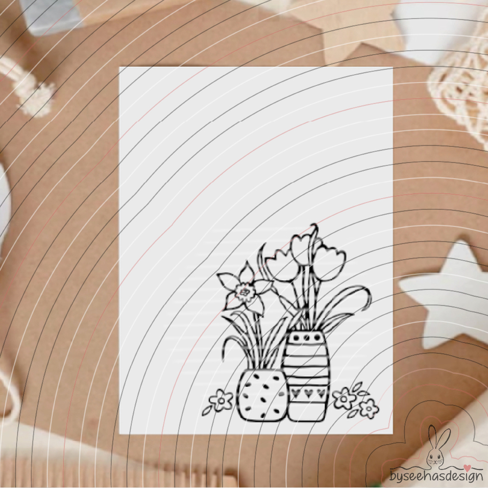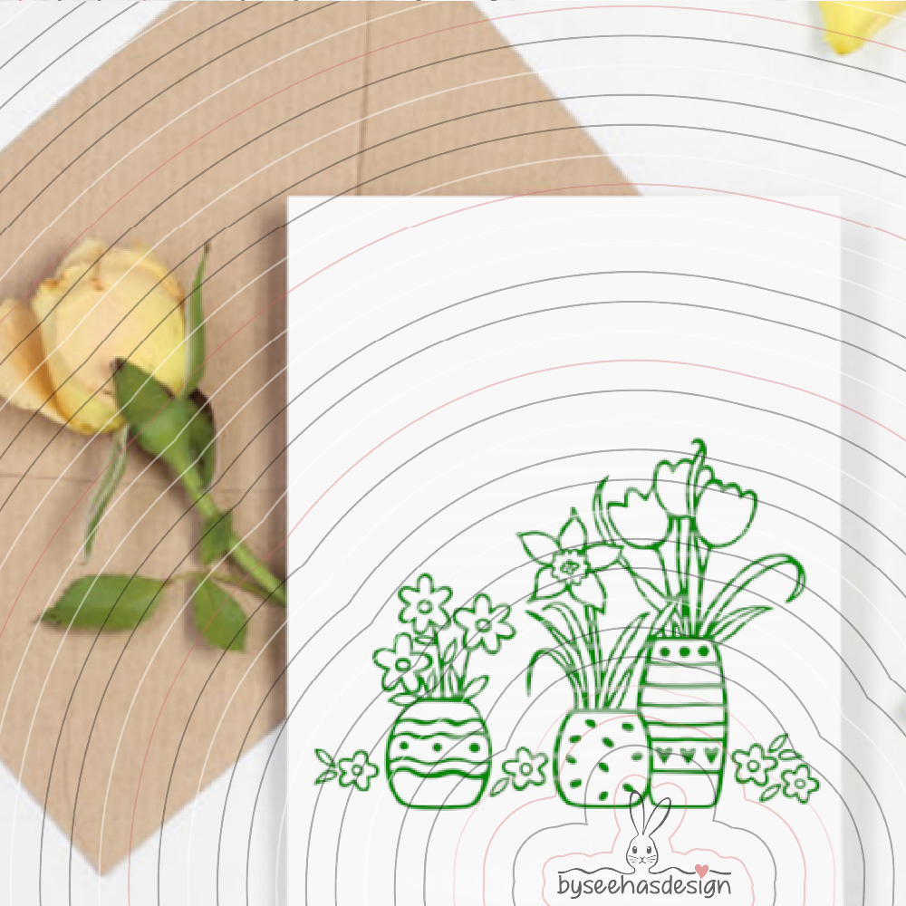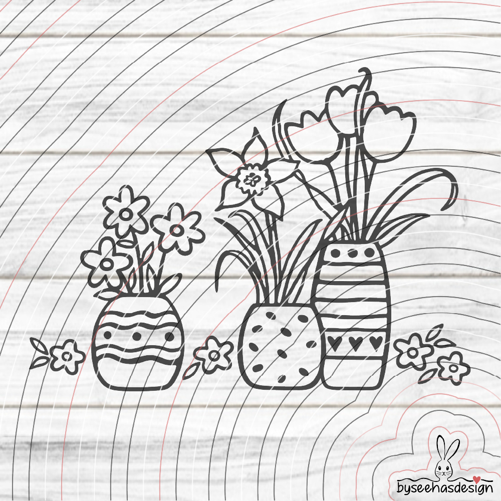 Eine Plotterdatei mit Blumen in Vasen für Dekorationen im Frühling, zu Ostern, zum Muttertag,