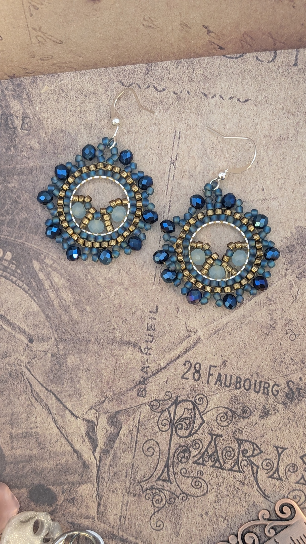 ✨Boho Hängeohrringe aus Glasperlen in Silber/Blau, handmade✨