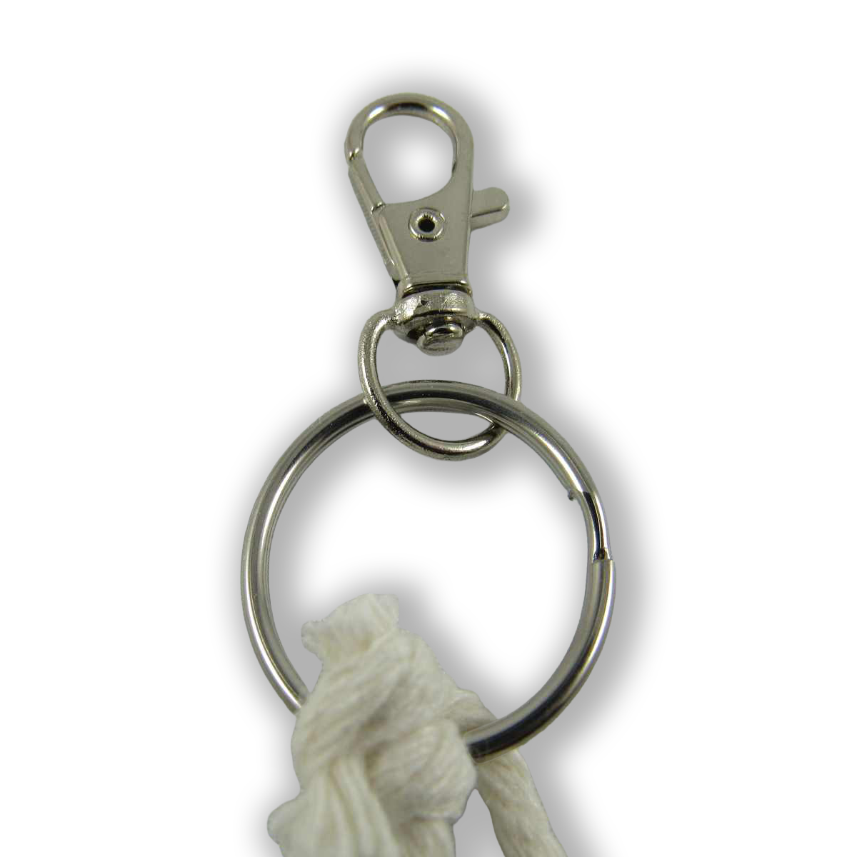 Material: 100% Baumwolle (Garn), Metall (Ring & Karabiner)