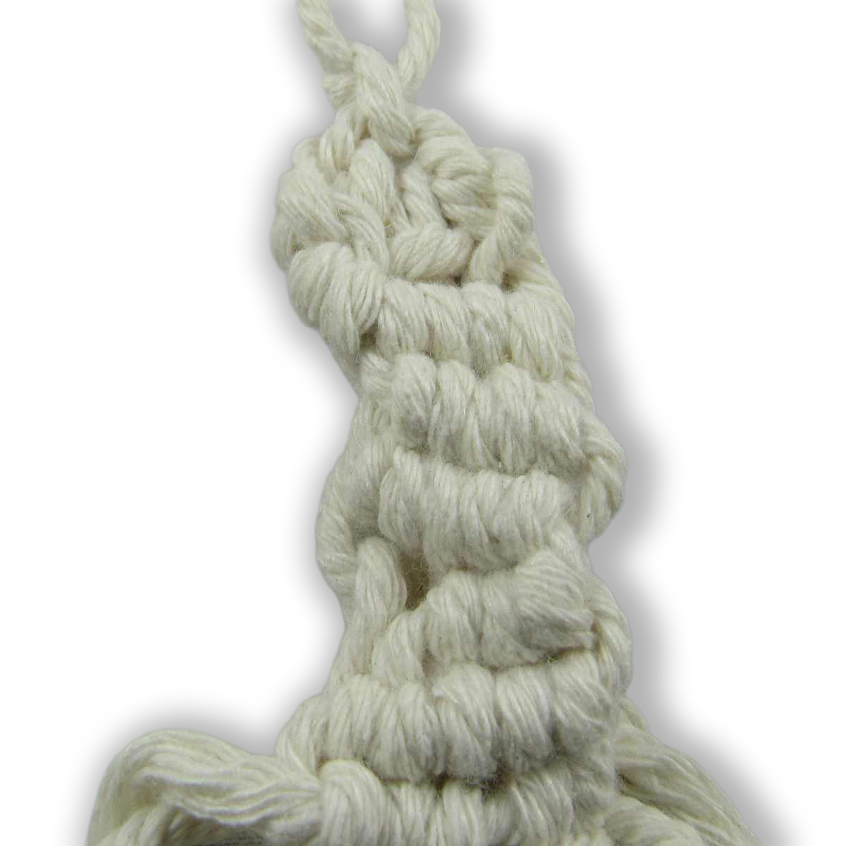 Echte Handarbeit: Jeder Anhänger wird mit Liebe zum Detail aus hochwertigem, naturweißem Baumwollgarn geknüpft.