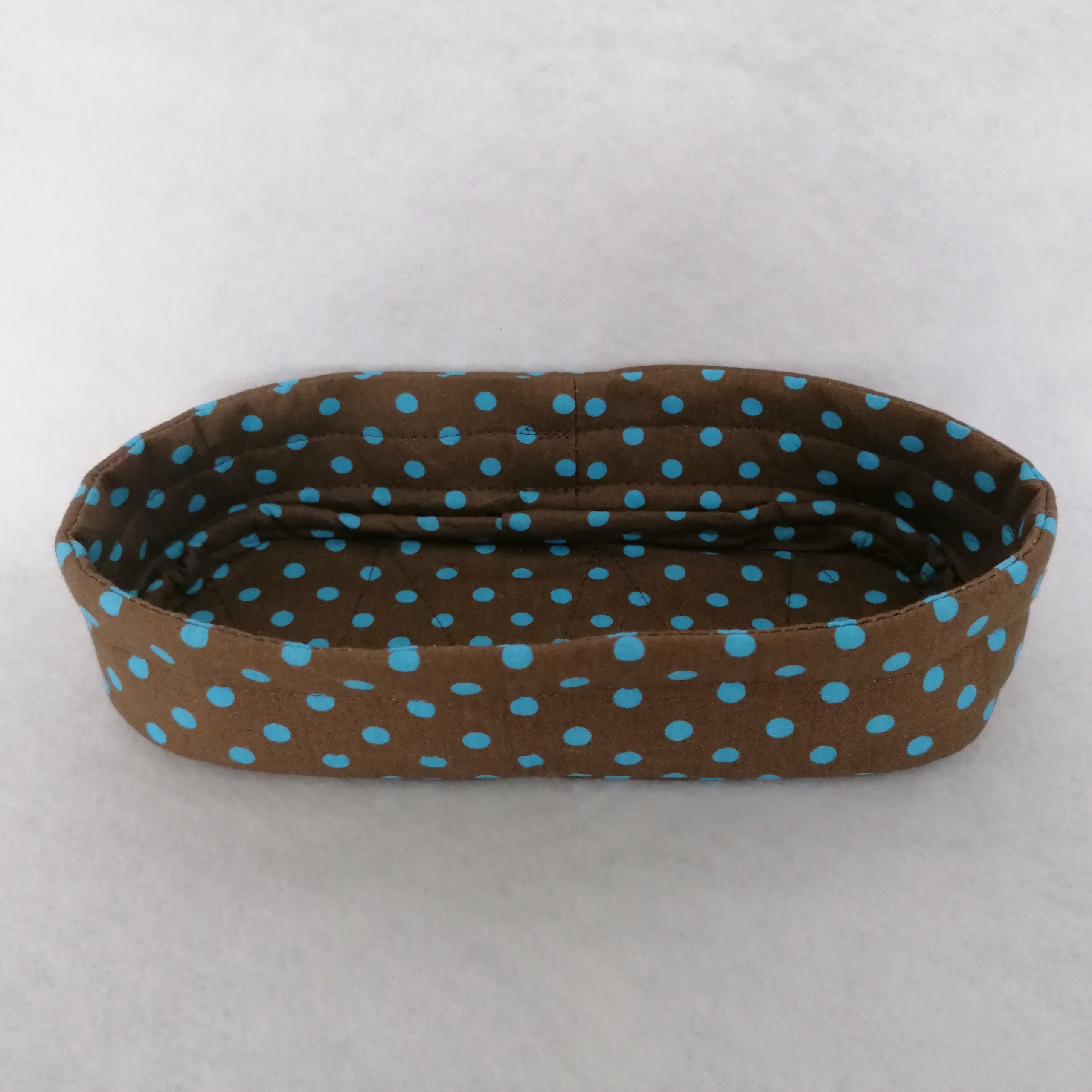 Das Stoffkörbchen ist aus vorgewaschenen Baumwollstoffen genäht und mit einem Vlies verstärkt, damit es einen guten Stand bietet.Mit den Produktmaßen: Länge 20cm, Breite 8cm, Höhe 5cm passt das Stoffkörbchen auf jedes Regal, Sideboard oder deinen Nachttisch.