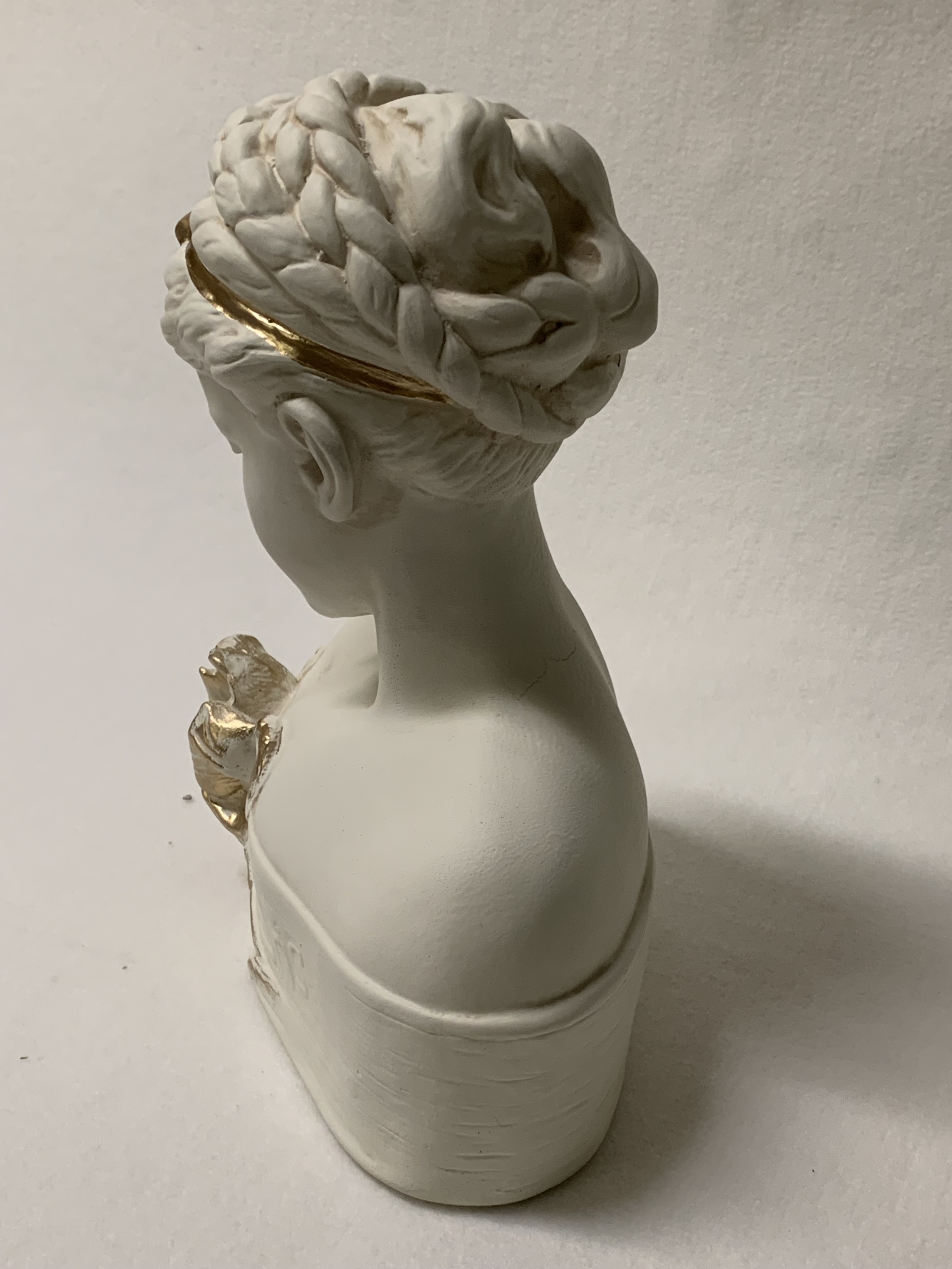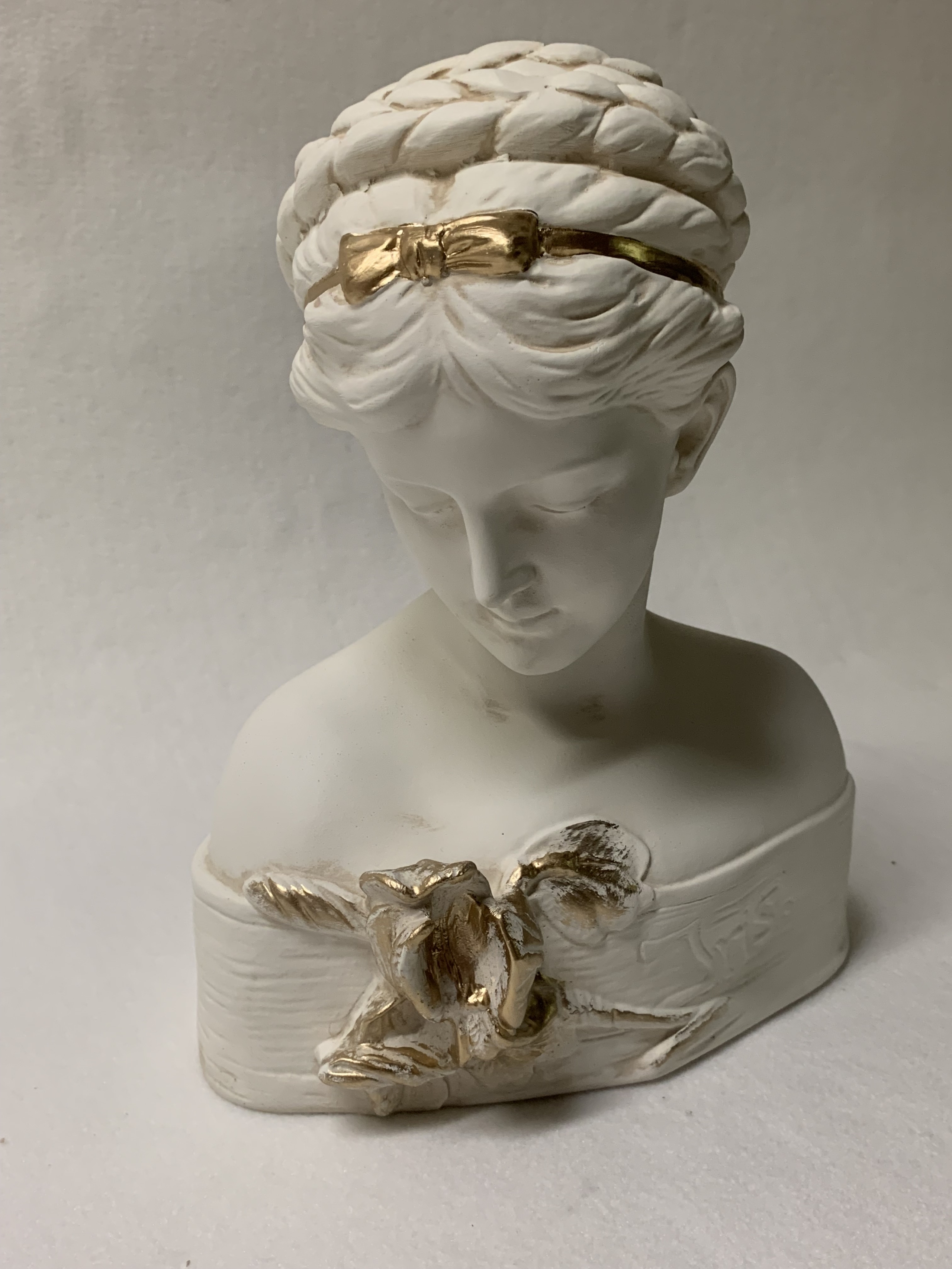 Schöne Büste eines Mädchens mit Zopf. 56 cm.