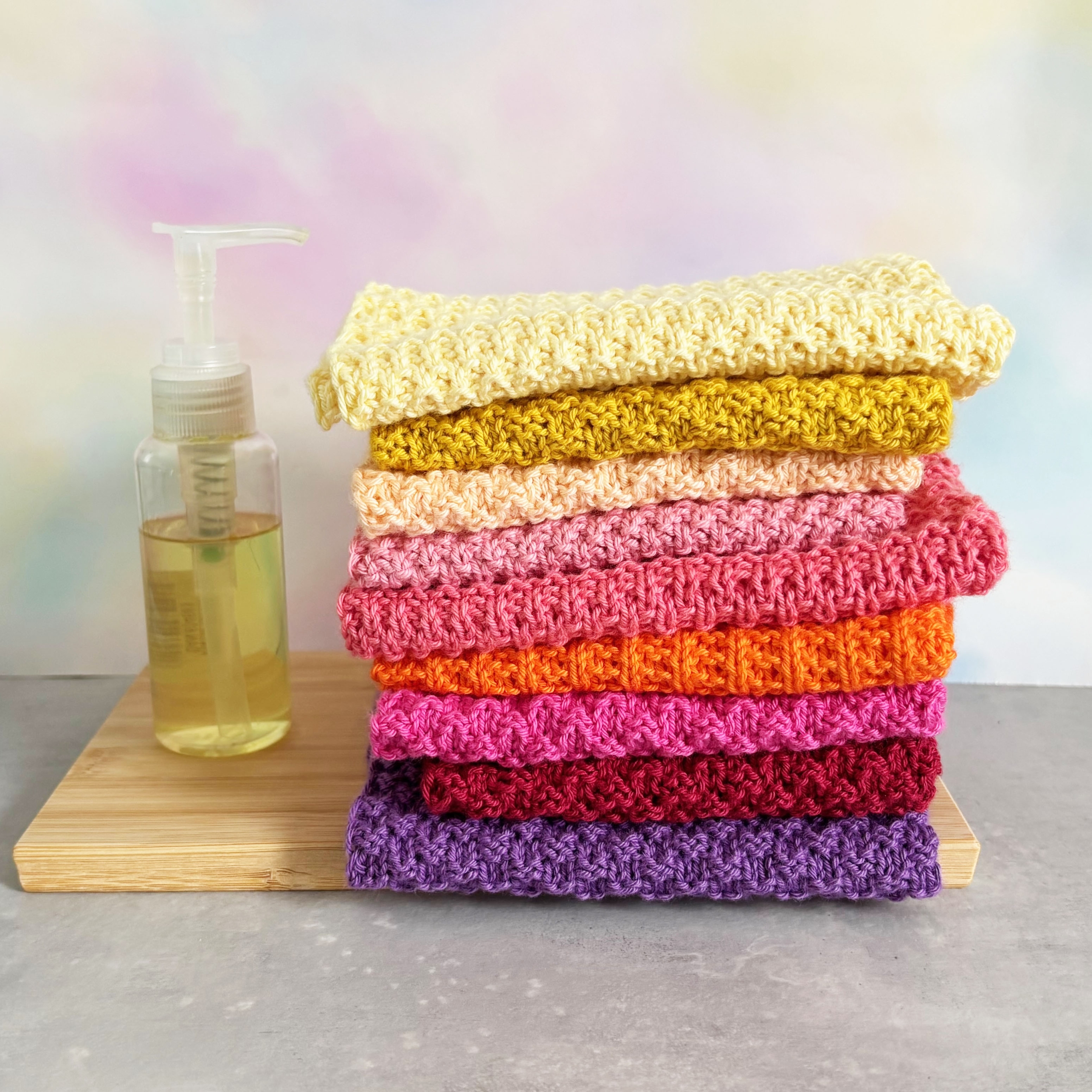 - Buntes Spültuch aus strapazierfähiger Baumwolle handgestrickt in Schachbrett, Waffelmuster, Strukturmuster oder kleinen Noppen