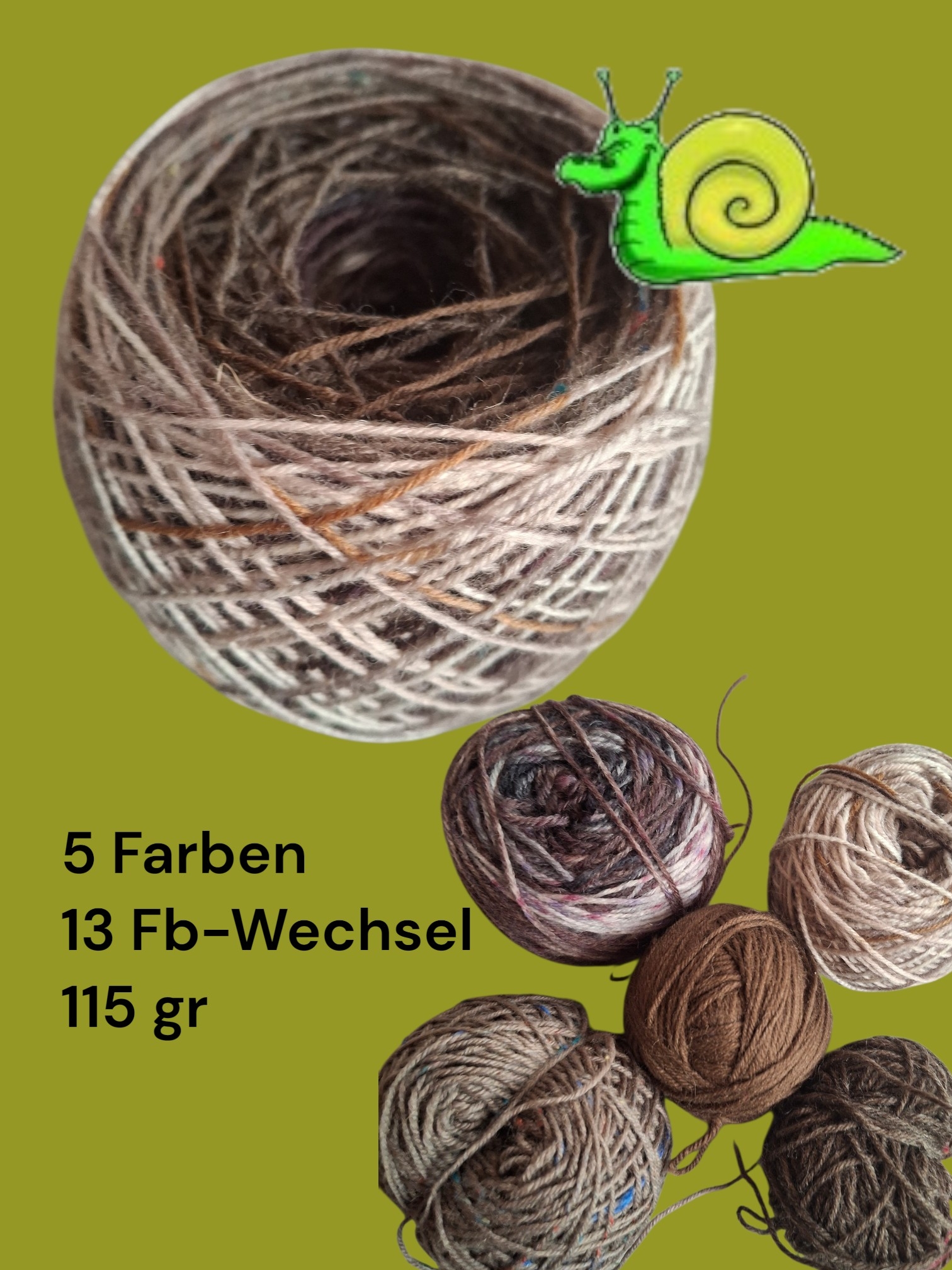 Du erhälst das hier abgebildete Garn - bestehend aus den gezeigten Wollresten. Jede Spleißverbindung wurde geprüft, damit sich nichts auflösen kann. Es können an den Enden sehr kleine Fädelchen entstehen, die sich beim Stricken jedoch wunderbar ins Bild einfügen. Die Sockenwolle ist Strickmaschinen geeignet - ich stricke selbst von Hand und auch mit einer CSM.