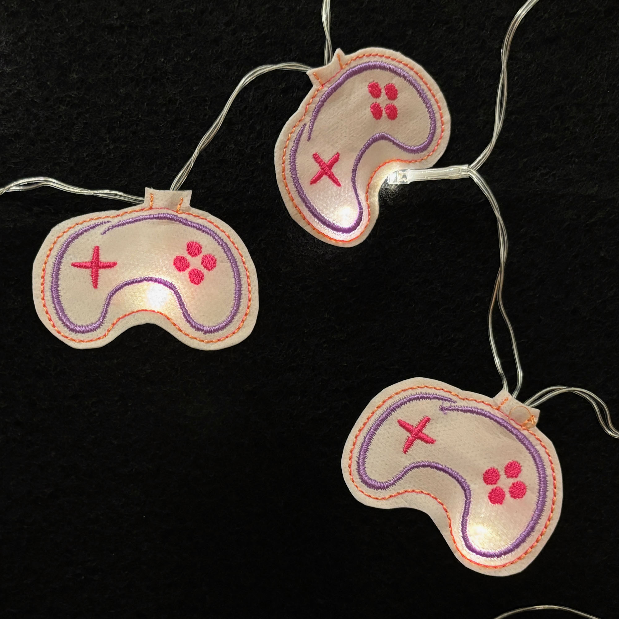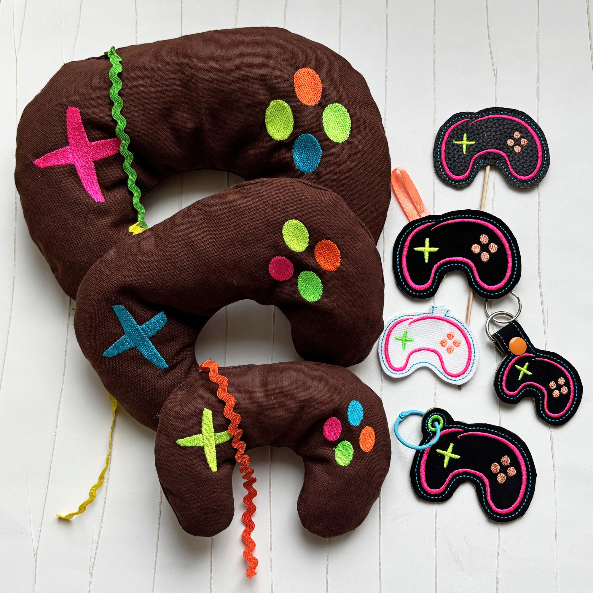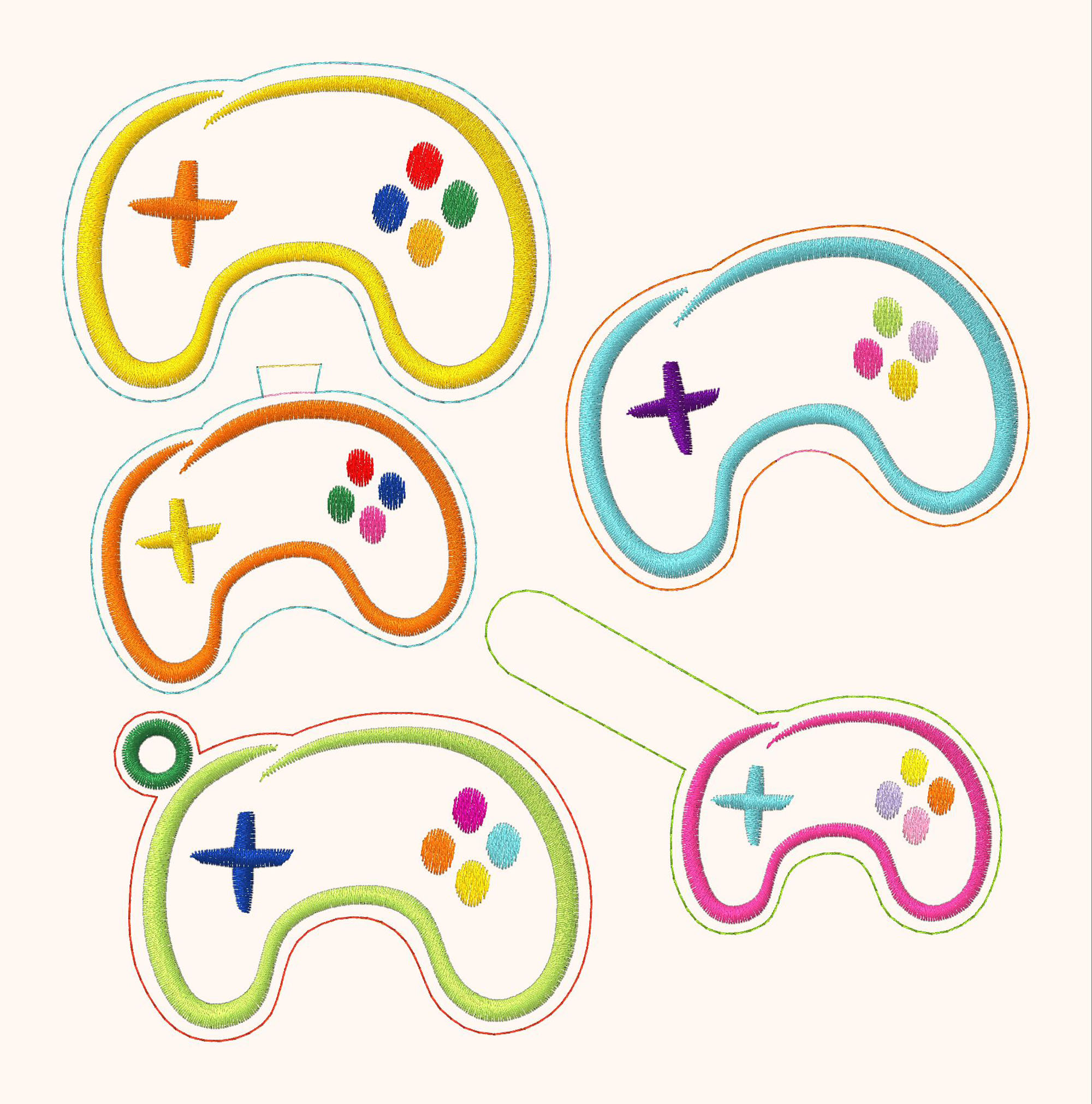 ITH Stickdateien Controller für Spielefans und echte Zocker als Taschenbaumler, Schlüsselanhänger mit Lasche, Dekoanhänger, Aufsatz für Lichterketten und Blumenpieker oder Tortenstecker.