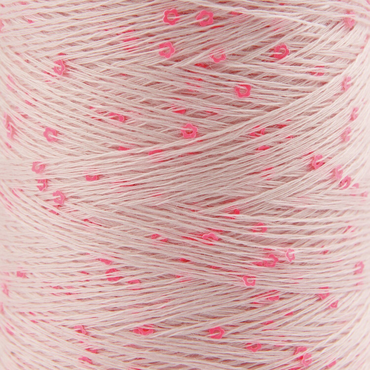 Creative Make It Blümchen ist ein schimmerndes Beilaufgarn, das mit filigranen Blüten-Pailletten veredelt ist. Die kleinen Blumen sind sorgfältig in den Trägerfaden aus 100 % Lyocell integriert und farblich stimmig abgestimmt. Durch das einfache Mitführen des Beilaufgarns während der Verarbeitung entsteht ein einzigartiger und stilvoller Look.