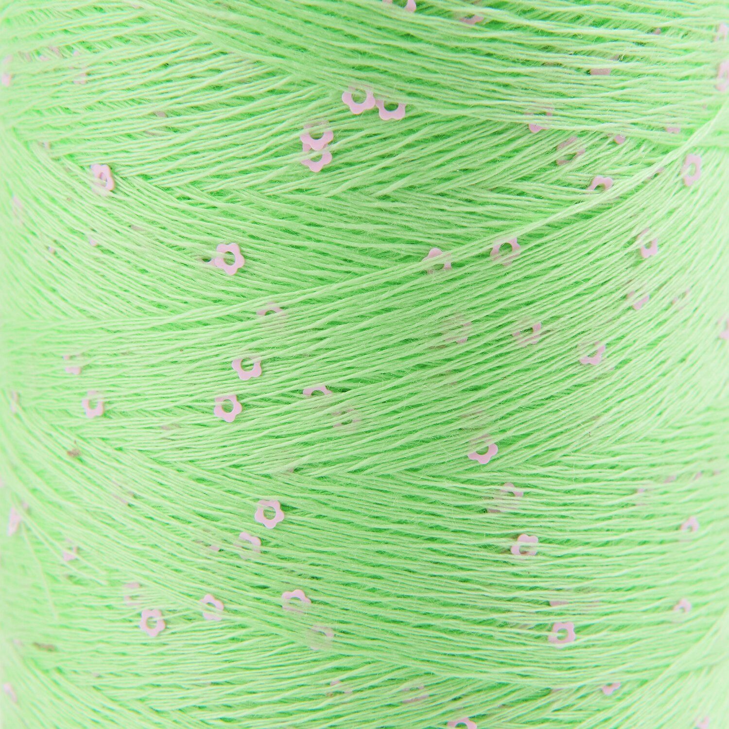 Creative Make It Blümchen ist ein schimmerndes Beilaufgarn, das mit filigranen Blüten-Pailletten veredelt ist. Die kleinen Blumen sind sorgfältig in den Trägerfaden aus 100 % Lyocell integriert und farblich stimmig abgestimmt. Durch das einfache Mitführen des Beilaufgarns während der Verarbeitung entsteht ein einzigartiger und stilvoller Look.