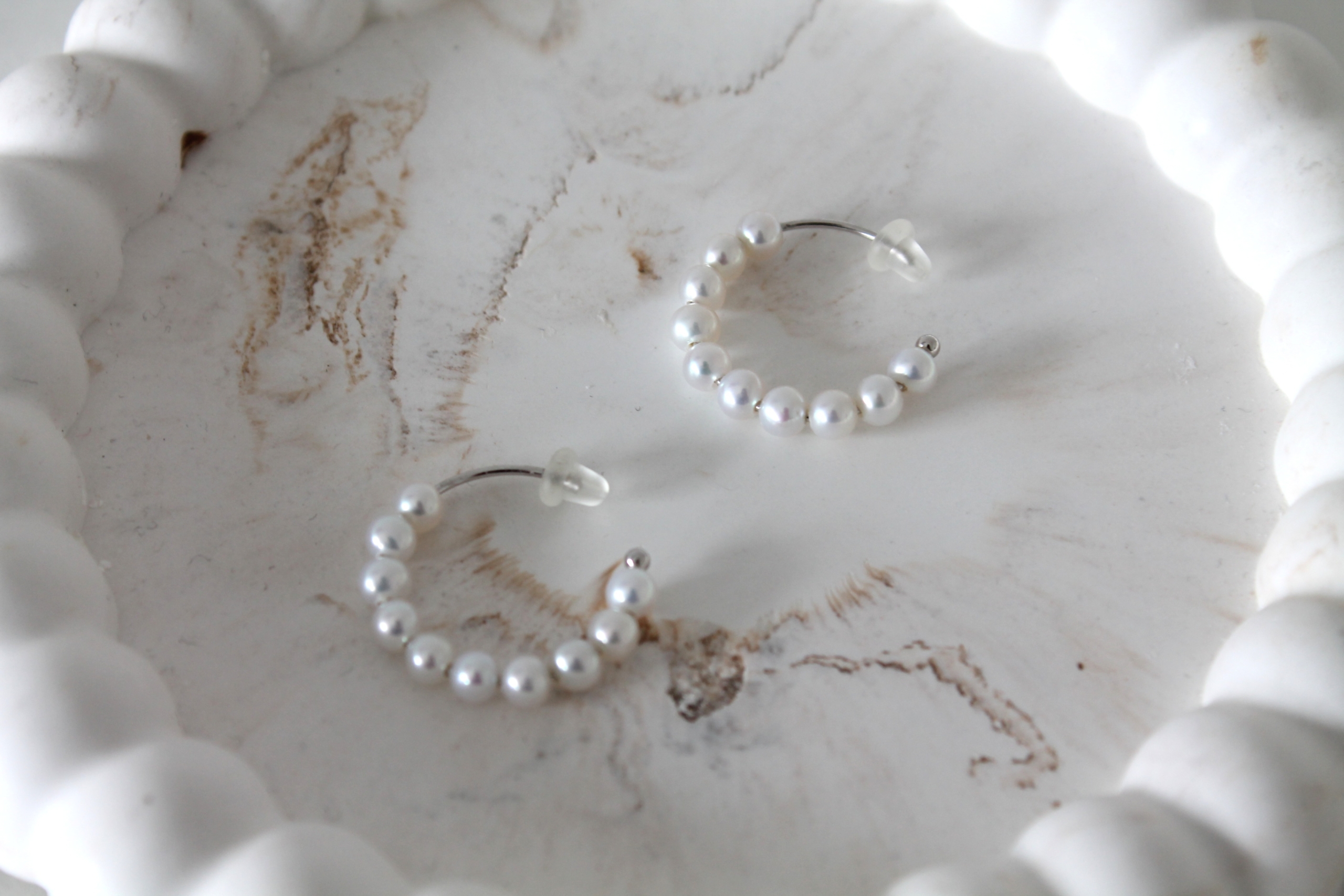 925/- Sterling Silber Creolen mit echten Süßwasserperlen.