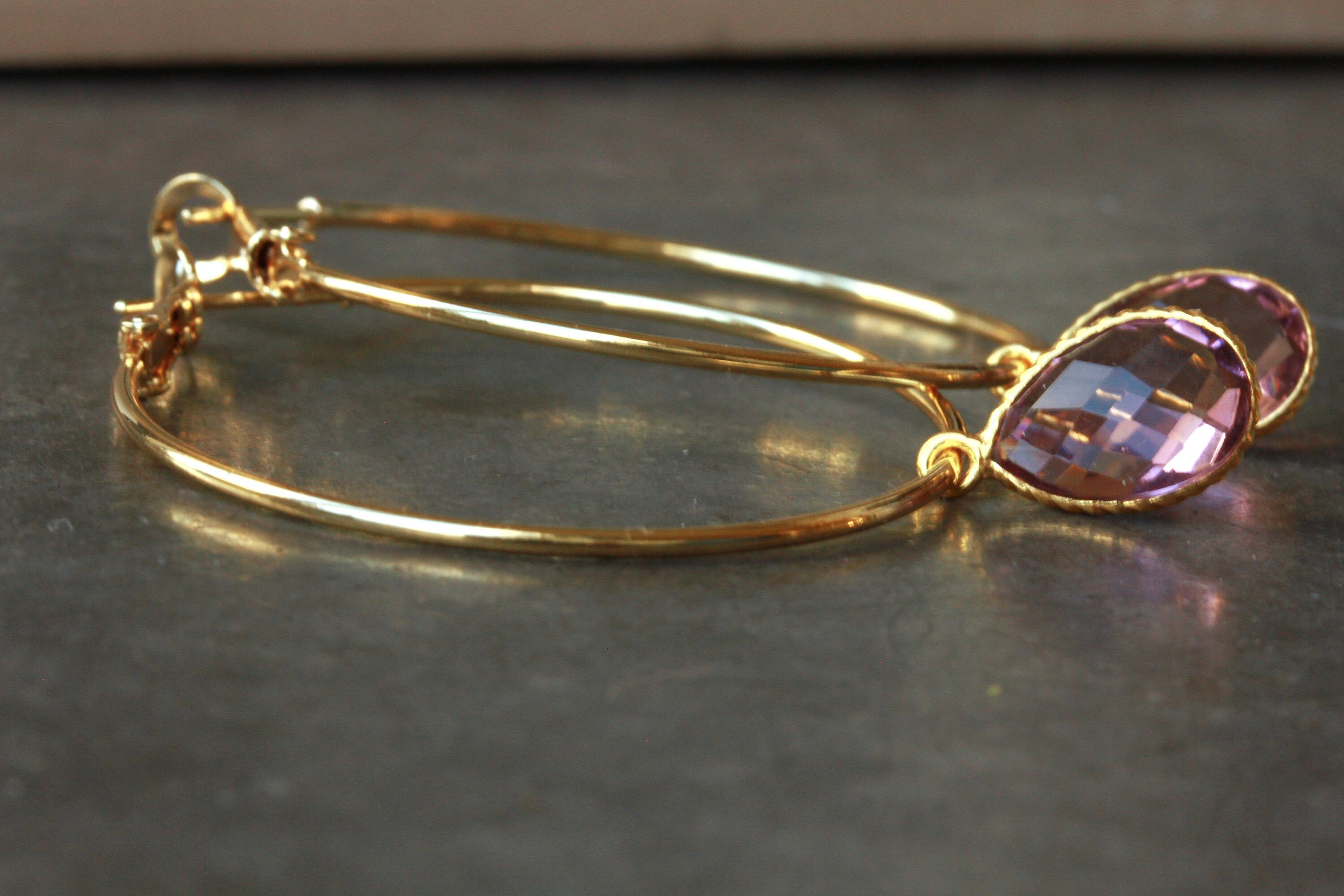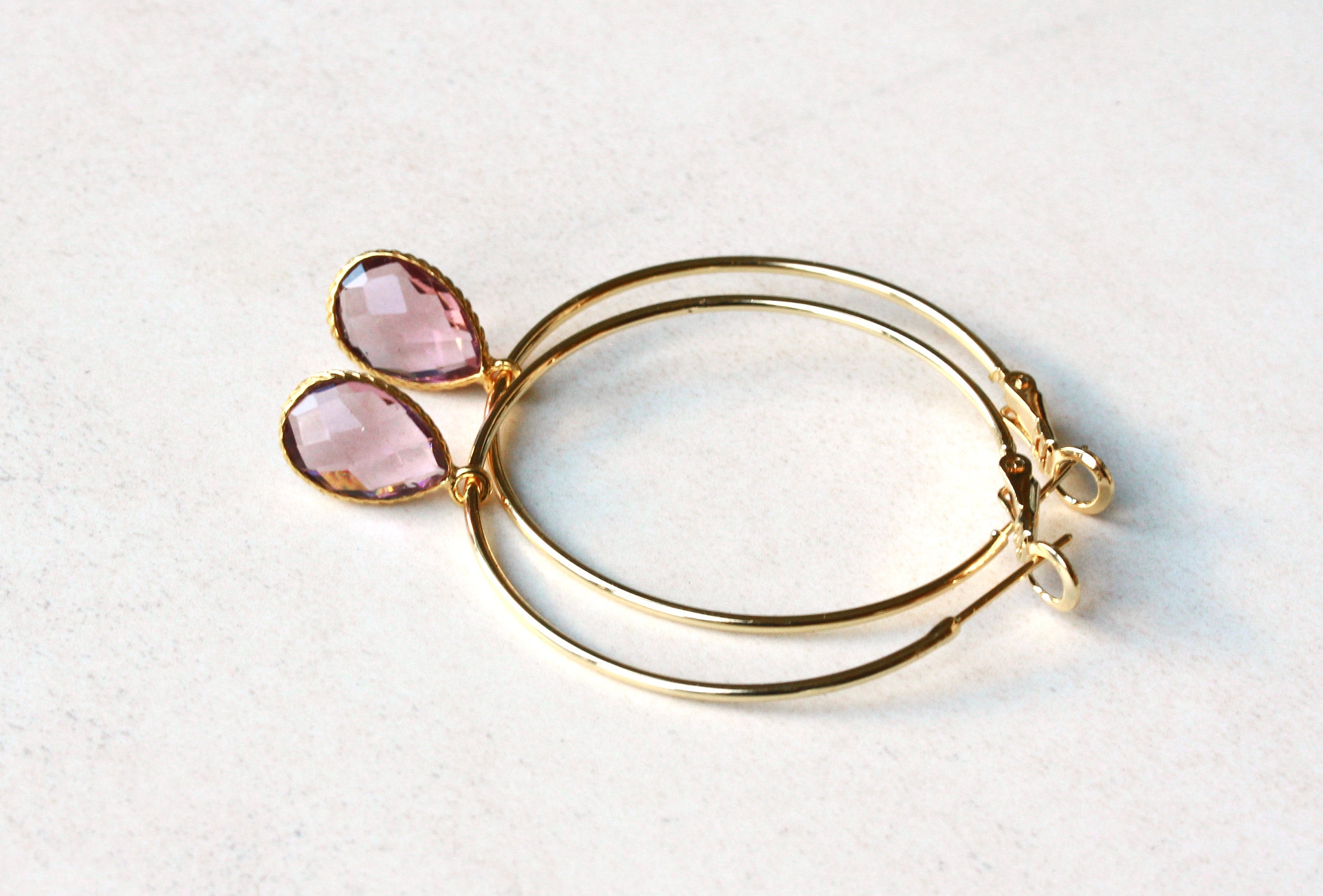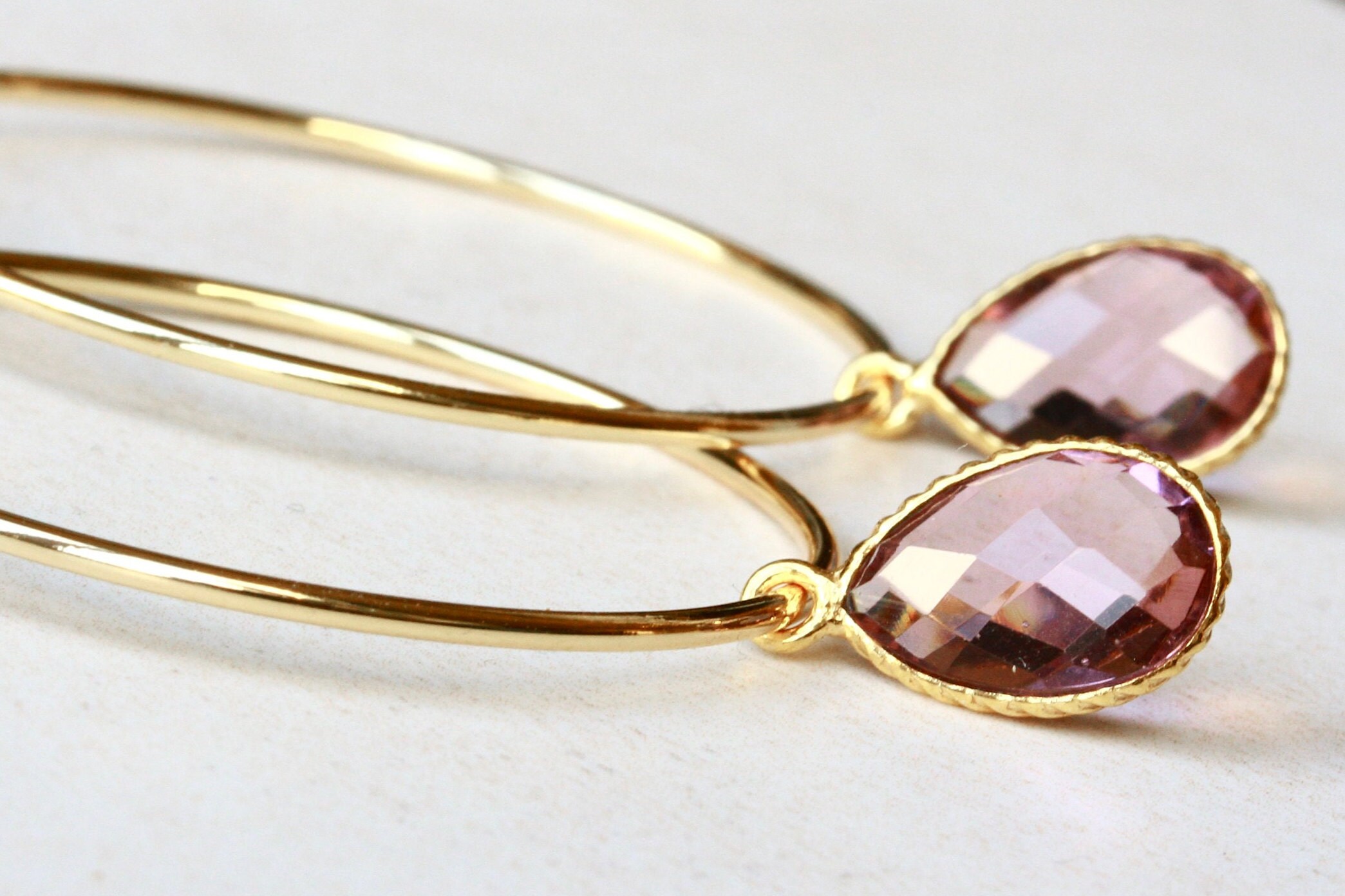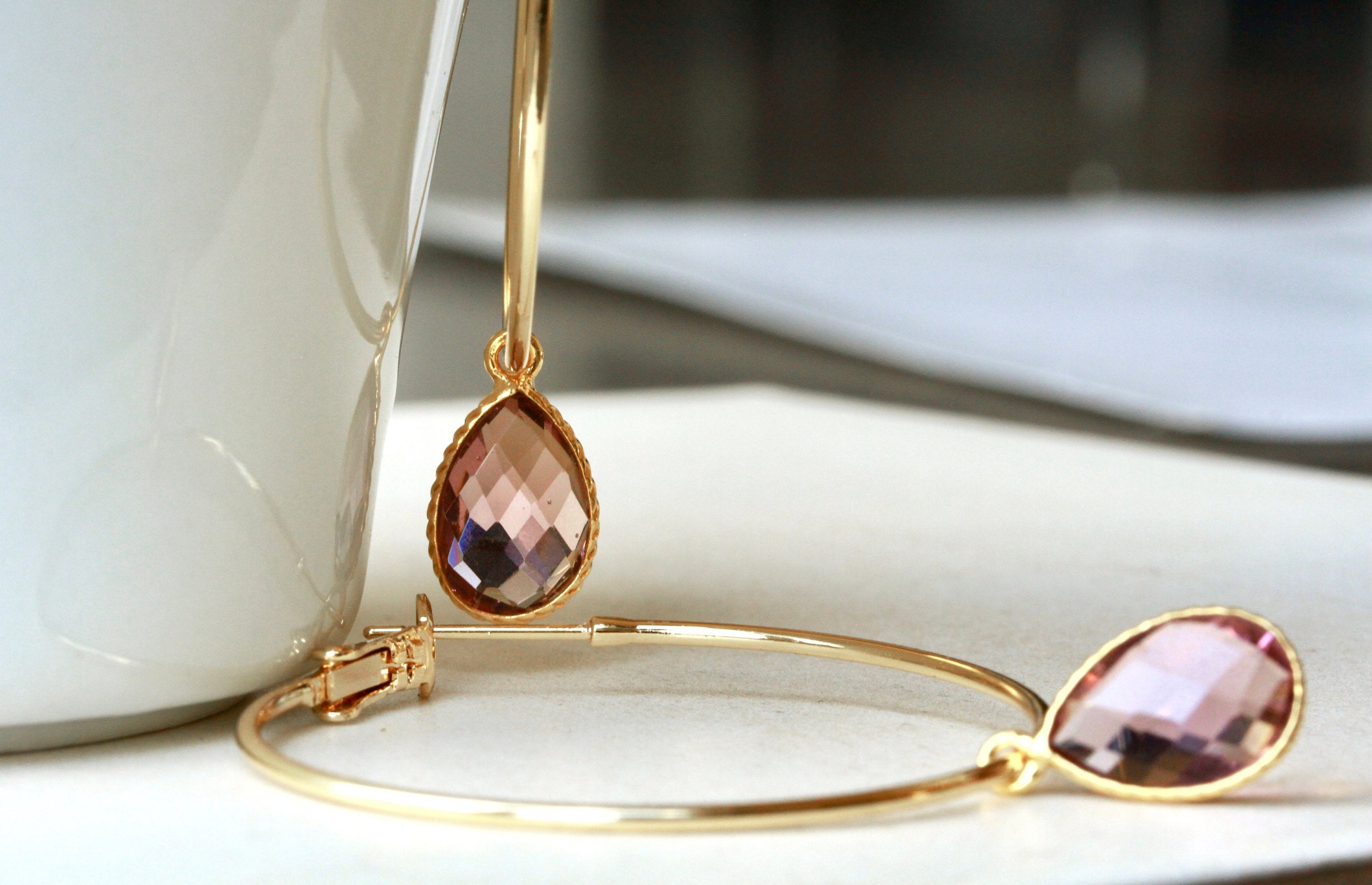 An echt vergoldeten großen Creolen baumelt jeweils in einer handgefertigten Fassung, ein fein facettierter Morganit. Die Creole ist wie ein Ohrstecker einfach durch das Ohrloch zu fädeln.