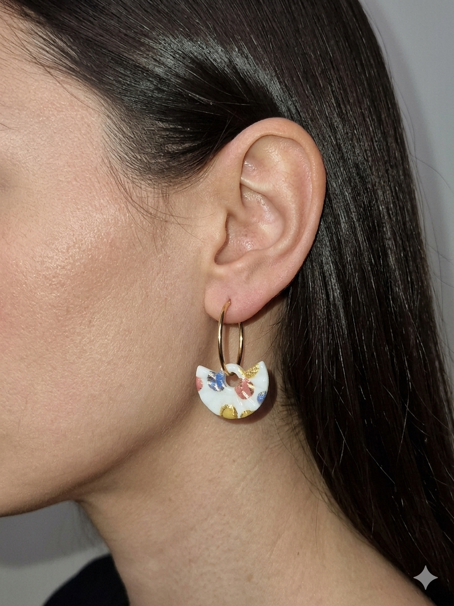 Pflegehinweis: Um die Langlebigkeit Ihrer handgemachten Schmuckstücke zu gewährleisten, vermeiden Sie bitte den Kontakt mit Wasser, Parfüm und Kosmetika. Bewahren Sie sie an einem trockenen Ort auf. Reinigen Sie die Polymer Clay-Teile bei Bedarf vorsichtig mit einem weichen, leicht feuchten Tuch.