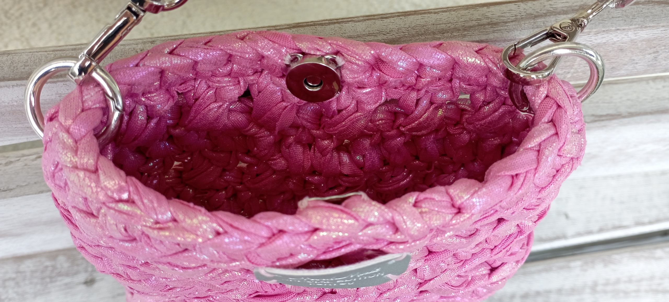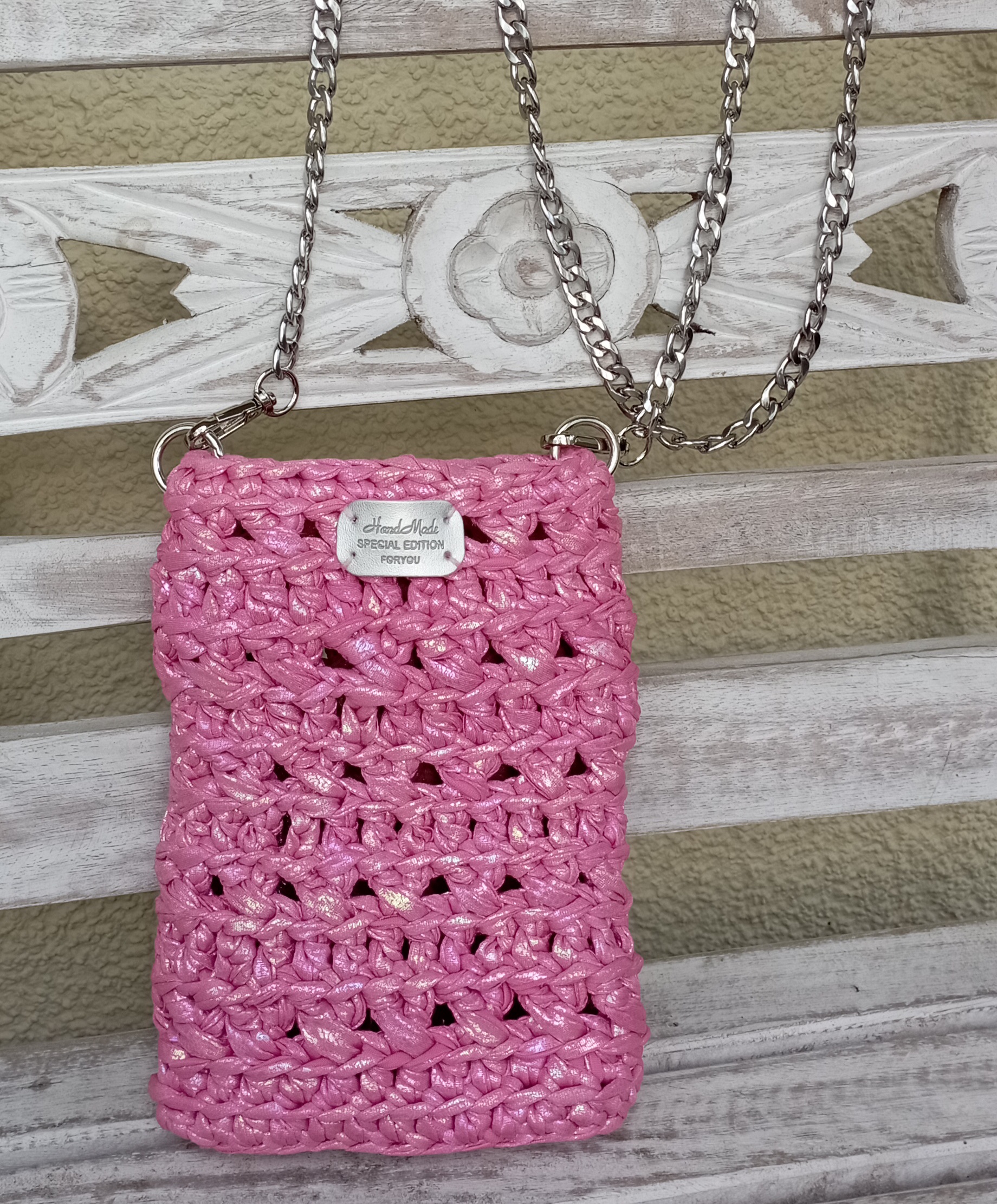 Gehäkeltes Unikat mit 1,20 m silberfarbener Schulterkette