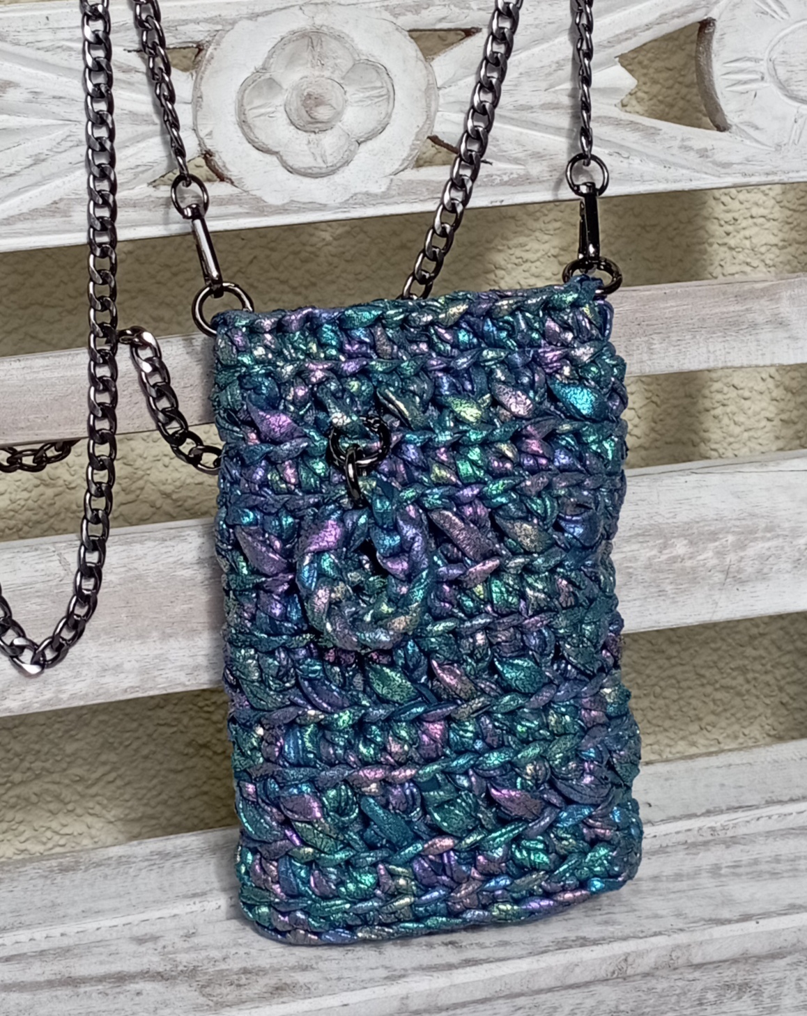 Gehäkeltes Unikat mit 1,20 m schwarzfarbener Schulterkette