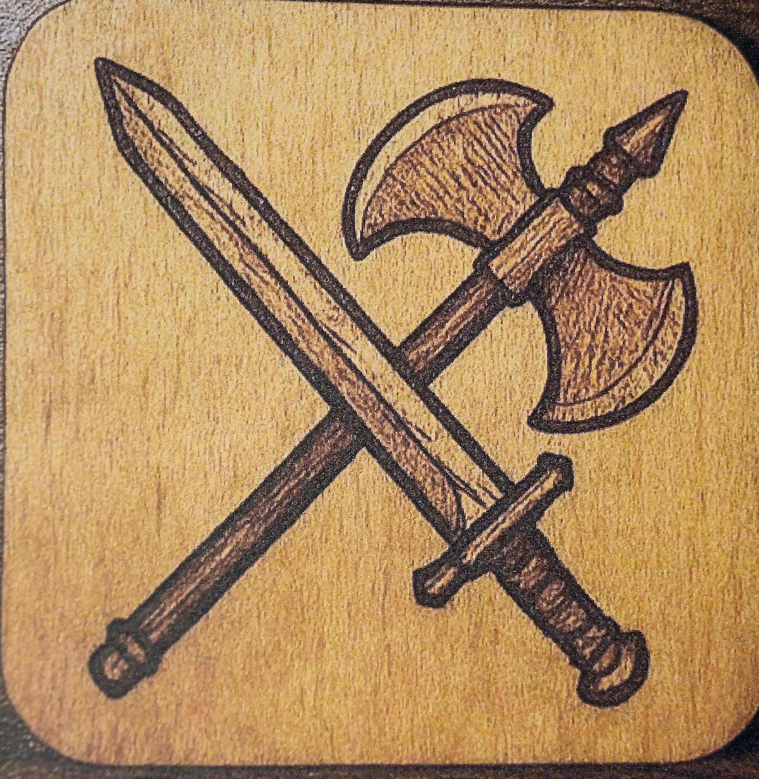 Auf Wunsch auch mit anderen Motiven: – Schwert ⚔️ – Axt – Zauberbuch – Giftflasche ☠️ etc.