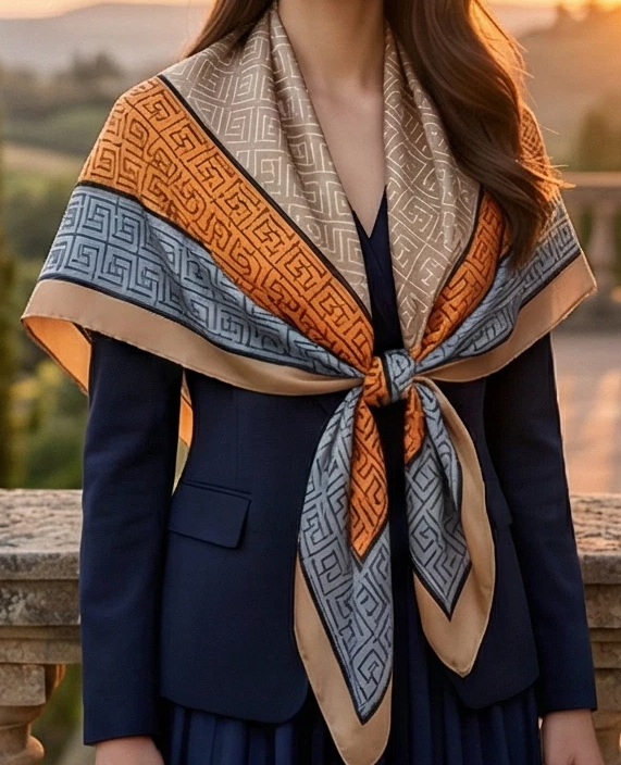 Das Design dieses Schals stammt von der Künstlerin Valentina Lubow und wurde zusammen mit anderen für einen kleinen Familienbetrieb dort entworfen. Die Größe des Schals beträgt 90 x 90 cm. Der Grundton ist beige-bunt. Gewebeart: Satin. Produktart: ein quadratischer Schal, mehrfarbig, pflegeleicht, Handwäsche, elegant und trendy.