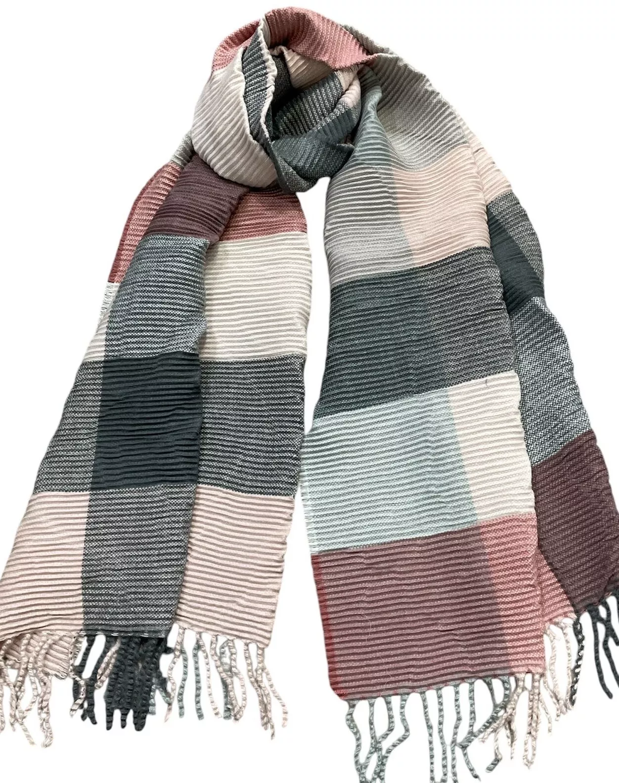 Dieser Damen-Herren Baumwoll-Karo-Winterschal, Ripp-Struktur, neu, mit Fransen ist schwarz-rosa im Karomuster und aus der Kollektion 2025/2026, super-soft!