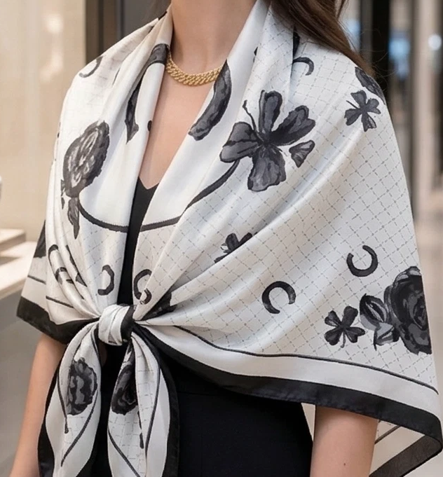 Der Schal eignet sich auch sehr gut als Halstuch oder Stola. Neue Kollektion für die Saison 2026!