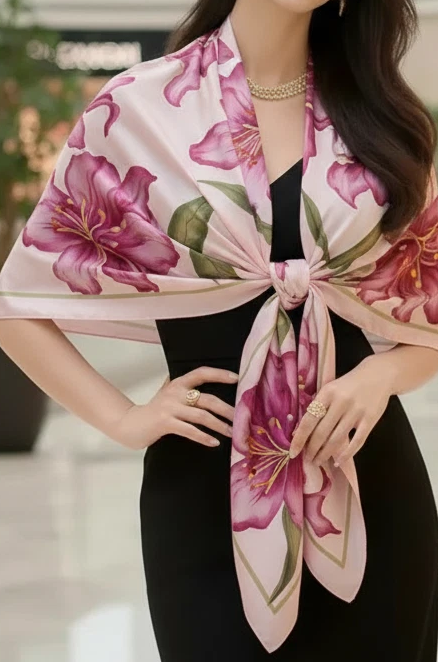 Der Schal eignet sich auch sehr gut als Halstuch oder Stola. Neue Kollektion für die Saison 2026!