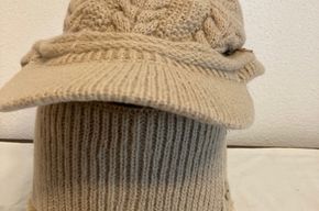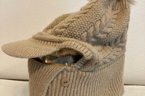 Sie kaufen eine handgestrickte Damen-Winter-Beanie-Mütze mit Bömmel und integriertem Schal mit Knopfverschluss, Farbe: khaki, Einheitsgröße Kopfmaß ca. 58 cm. Material: Baumwolle mit Vlees unterfüttert. Der Schal kann mit den Knöpfen in der Schutzfunktion bis über die Nase verstellt werden.