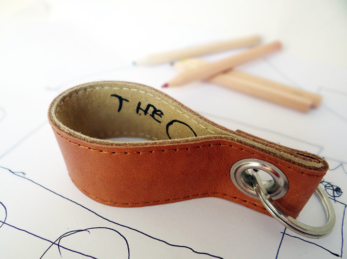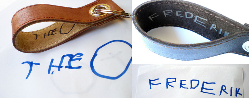 Hier nun die Alternative zum "Din-A4 Blatt in der Tasche tragen" - ein schöner edler Lederschlüsselanhänger in den der Name des Kindes übertragen wurde- wohlgemerkt in der Originalschrift eures Kindes!
