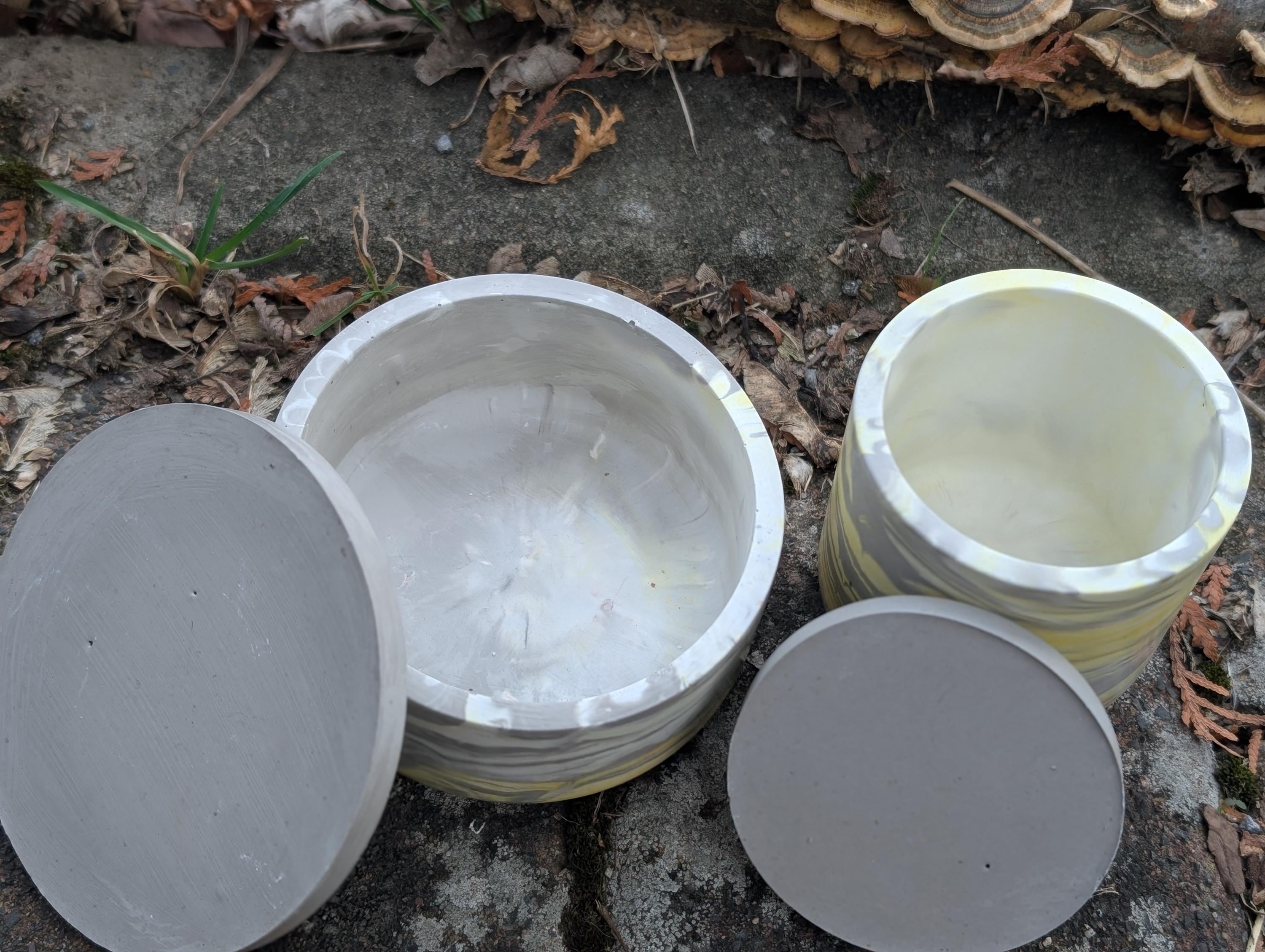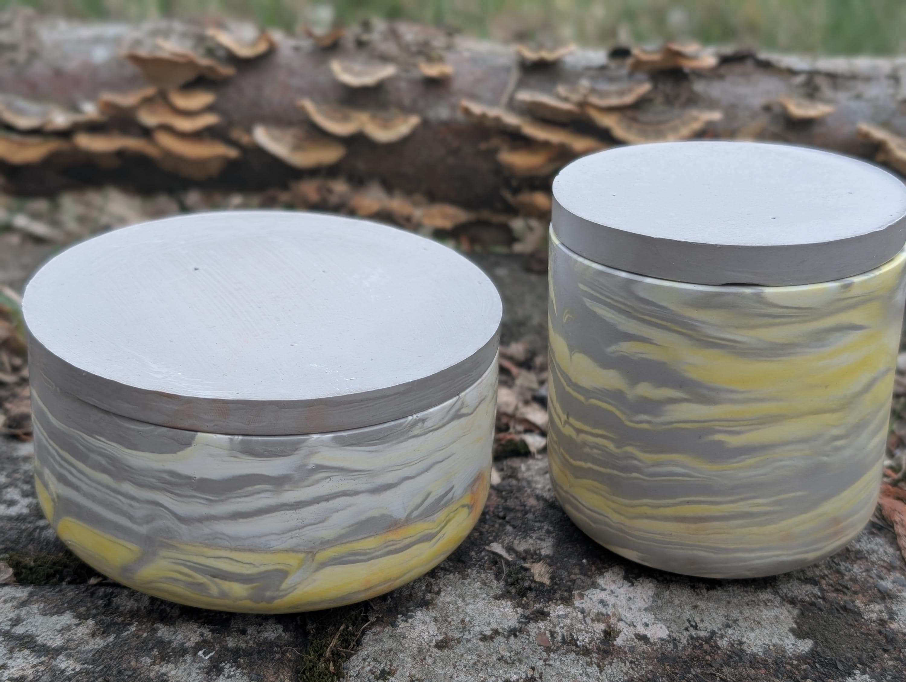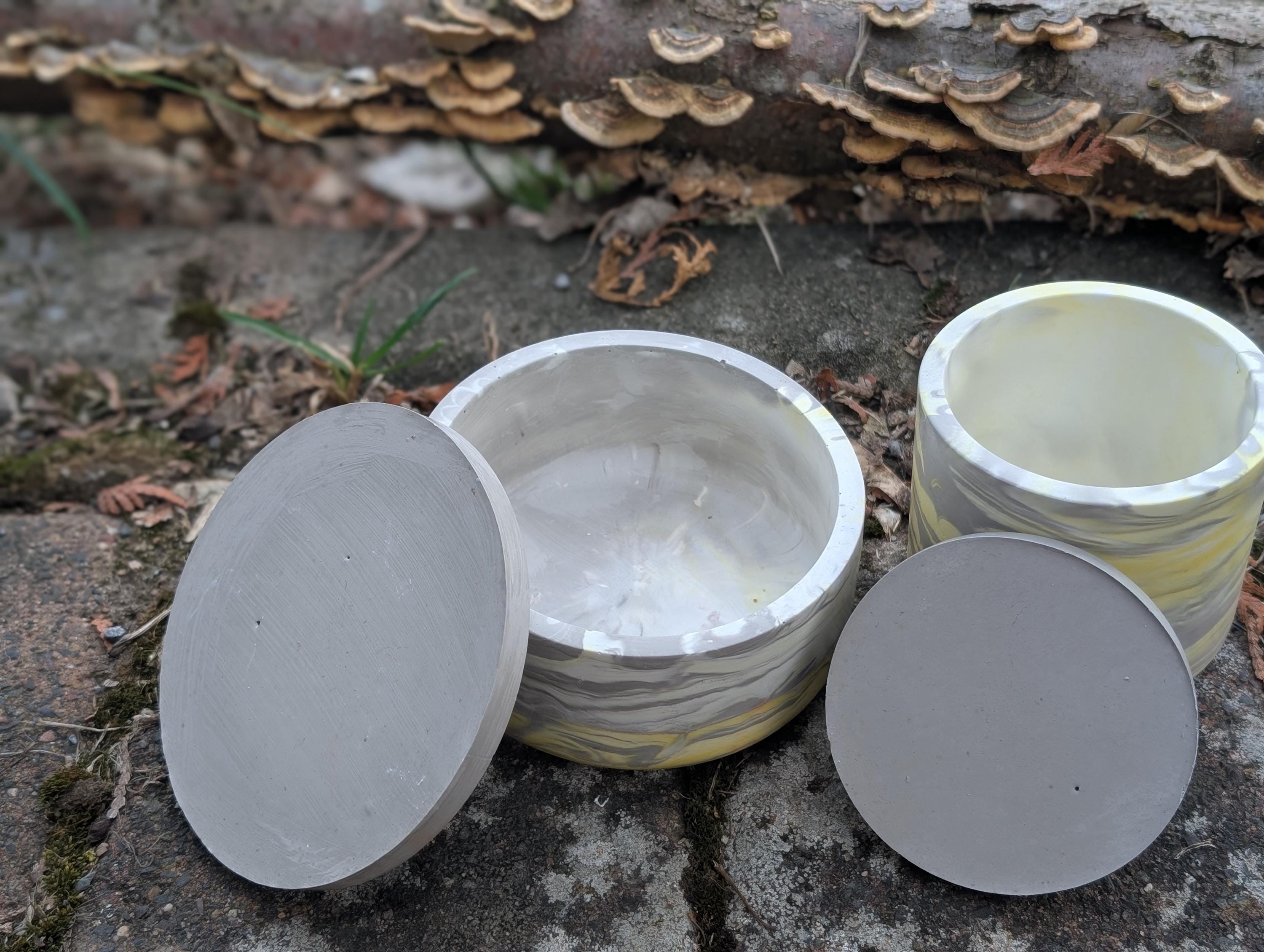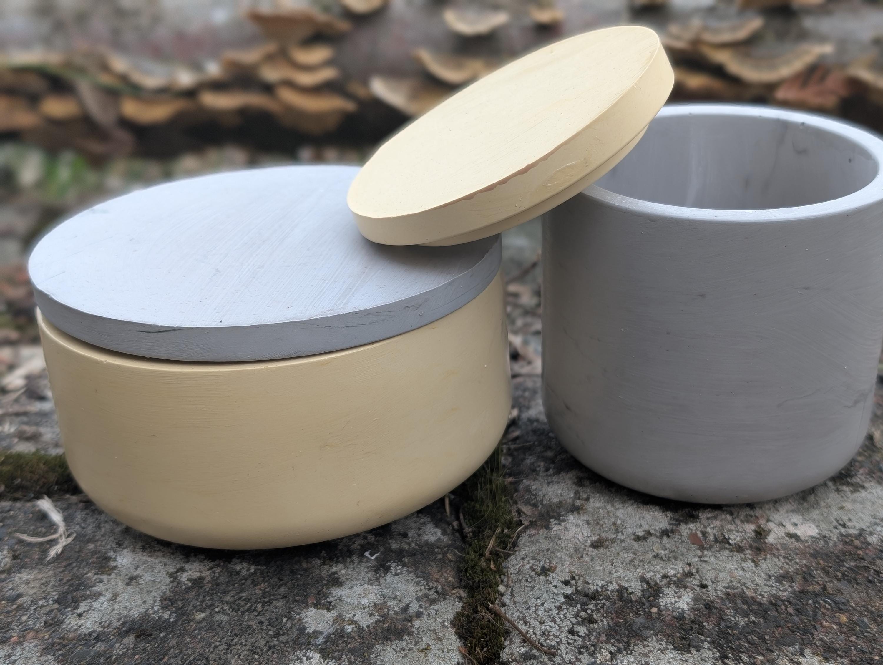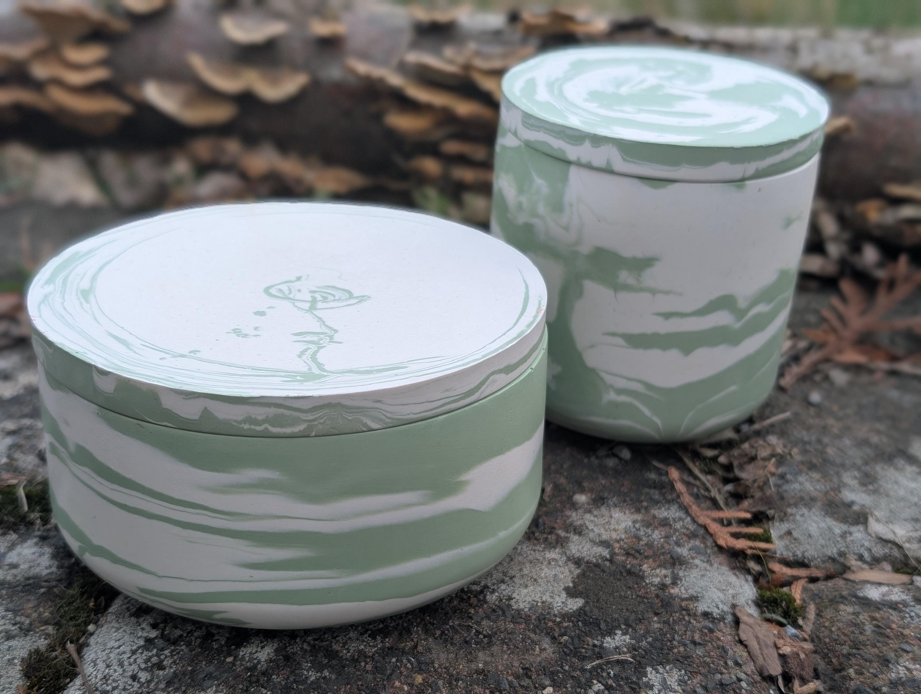 Ich gestalte dir dein Dosenset nach Wunschfarben (marmoriert, schlicht, mit mehreren Farben...) Schreibe mir deine Wunschgestaltung bitte in die Personalisierung und ich gieße dir deine Dosen mit Deckel nach Wunsch. Wenn du einen Plot mit Vinylfolie auf die Schalen haben möchtest, teile mir das gerne auch mit - gegen einen Aufpreis mache ich das gerne!