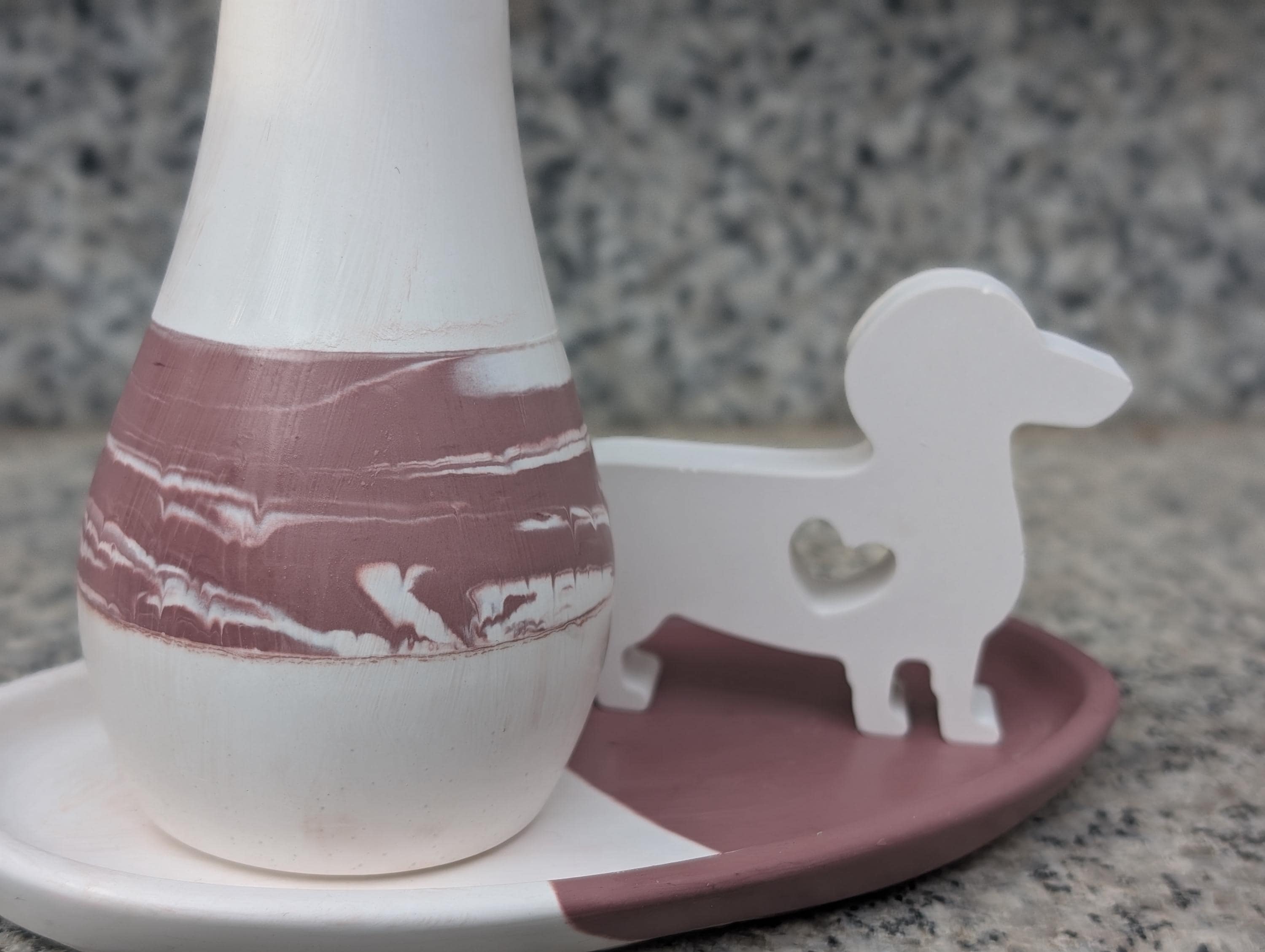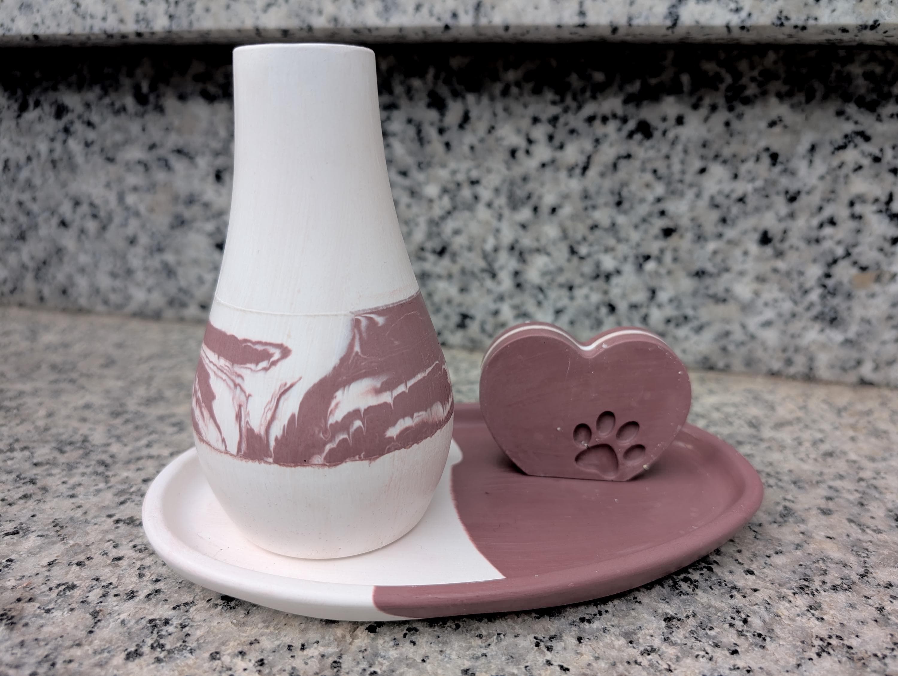 Dieses schöne kleine Deko-Set ist handgegossen in der Farbe bordeaux kombiniert mit weiß. Ich gieße es dir gerne in der Farbe/ in den Farben deiner Wahl.