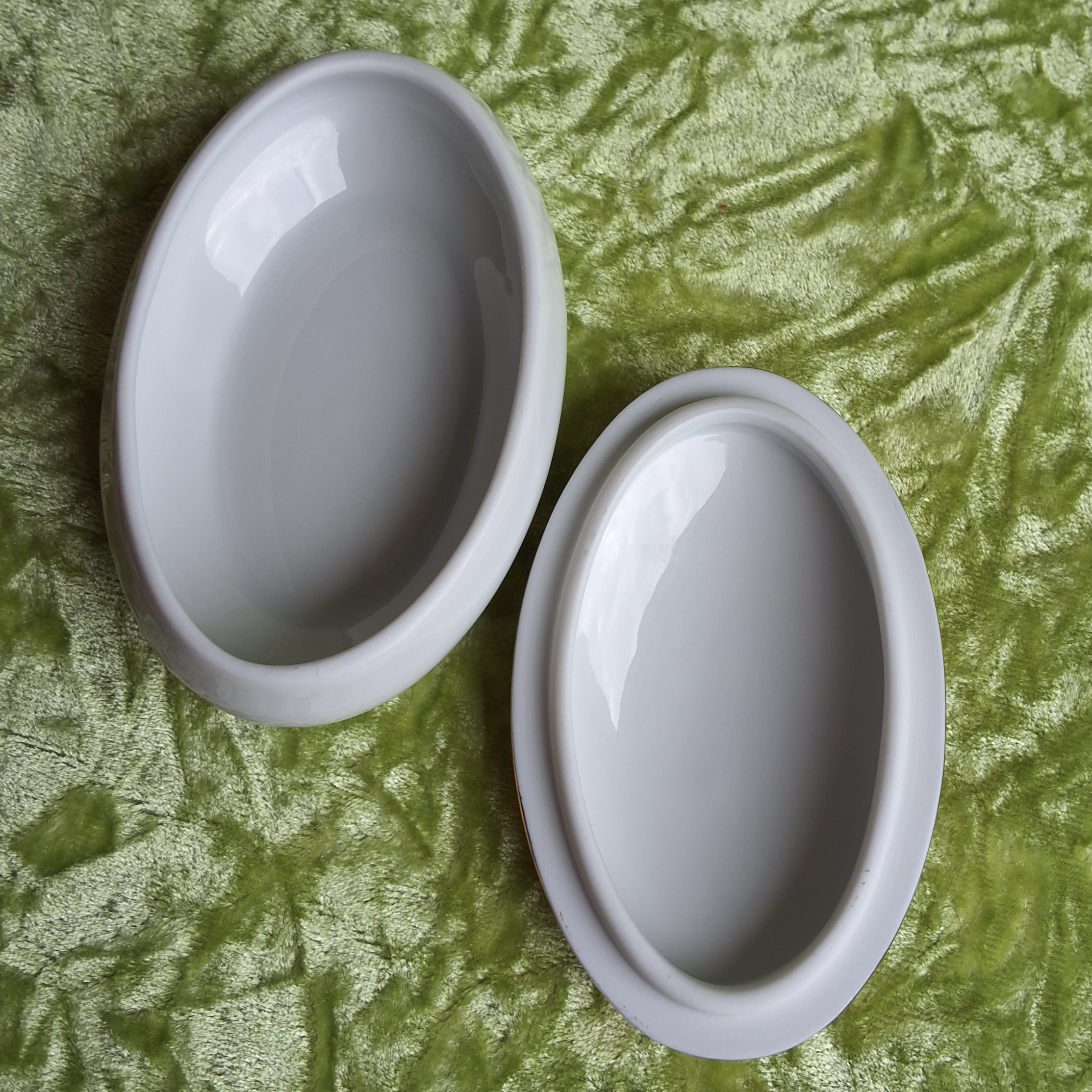 Maße: Schale 10,5 cm x 6,7 cm. 3,5 cm Höhe.