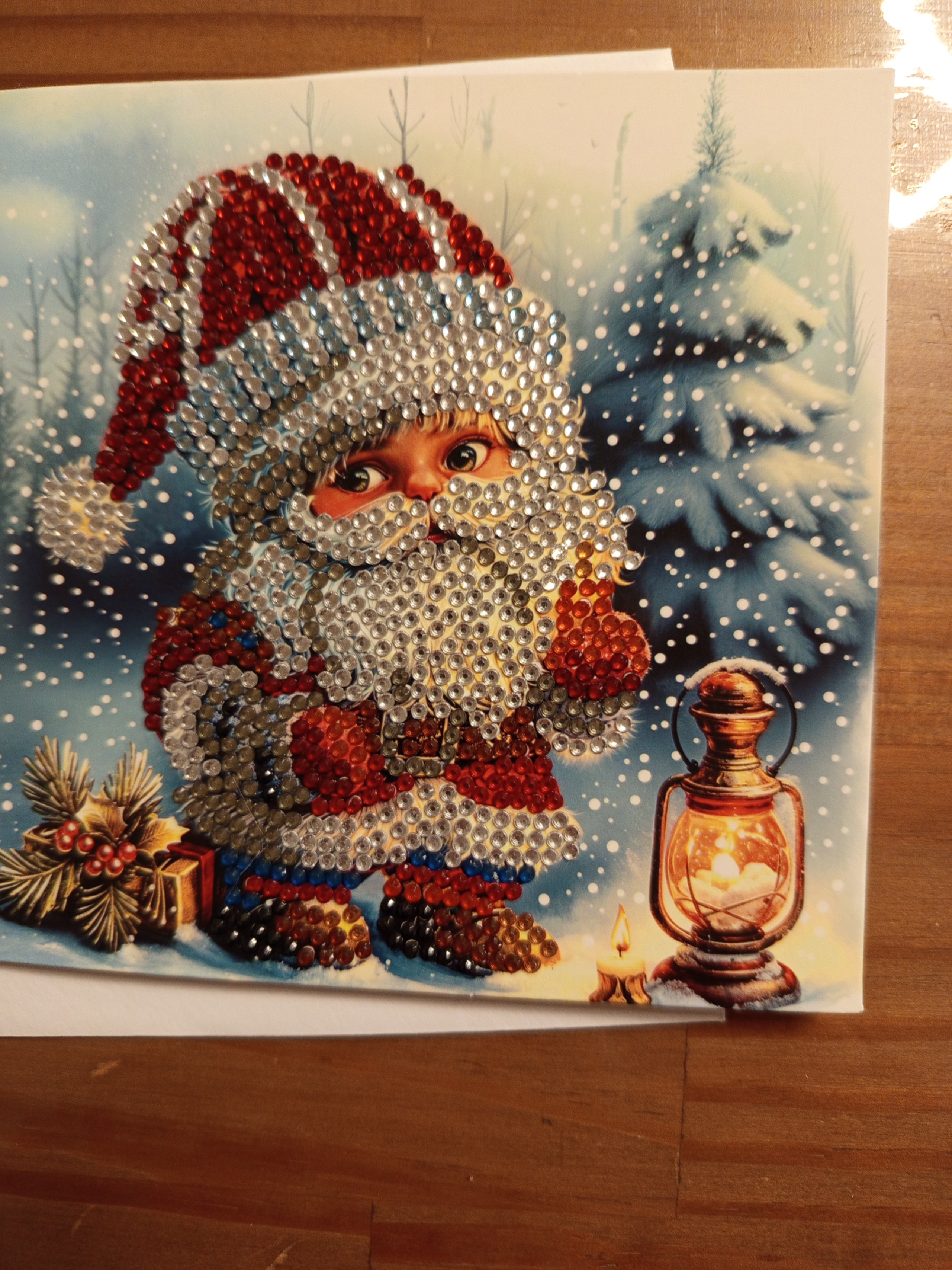 Handgefertigt Weihnachtskarte mit Diamond Painting Steine mit passendem Umschlag.