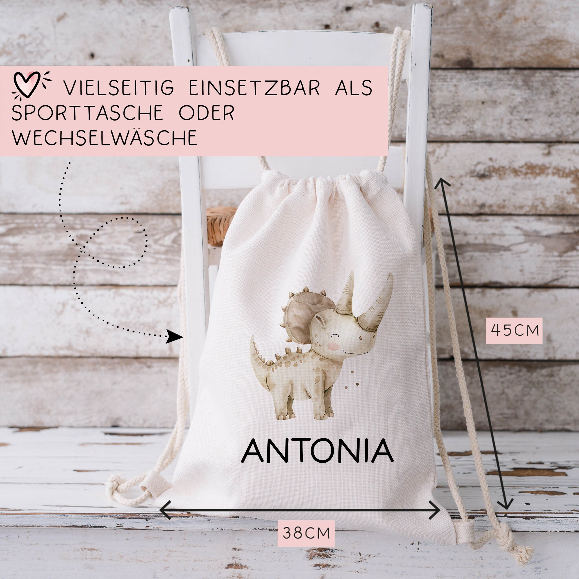 Personalisierter Turnbeutel Affe, Elefant, Hund, Katze, Kuh, Tiger, Löwe, Pferd, Wal, Hase | Kindergarten, KITA , KIGA | als Wäschebeutel