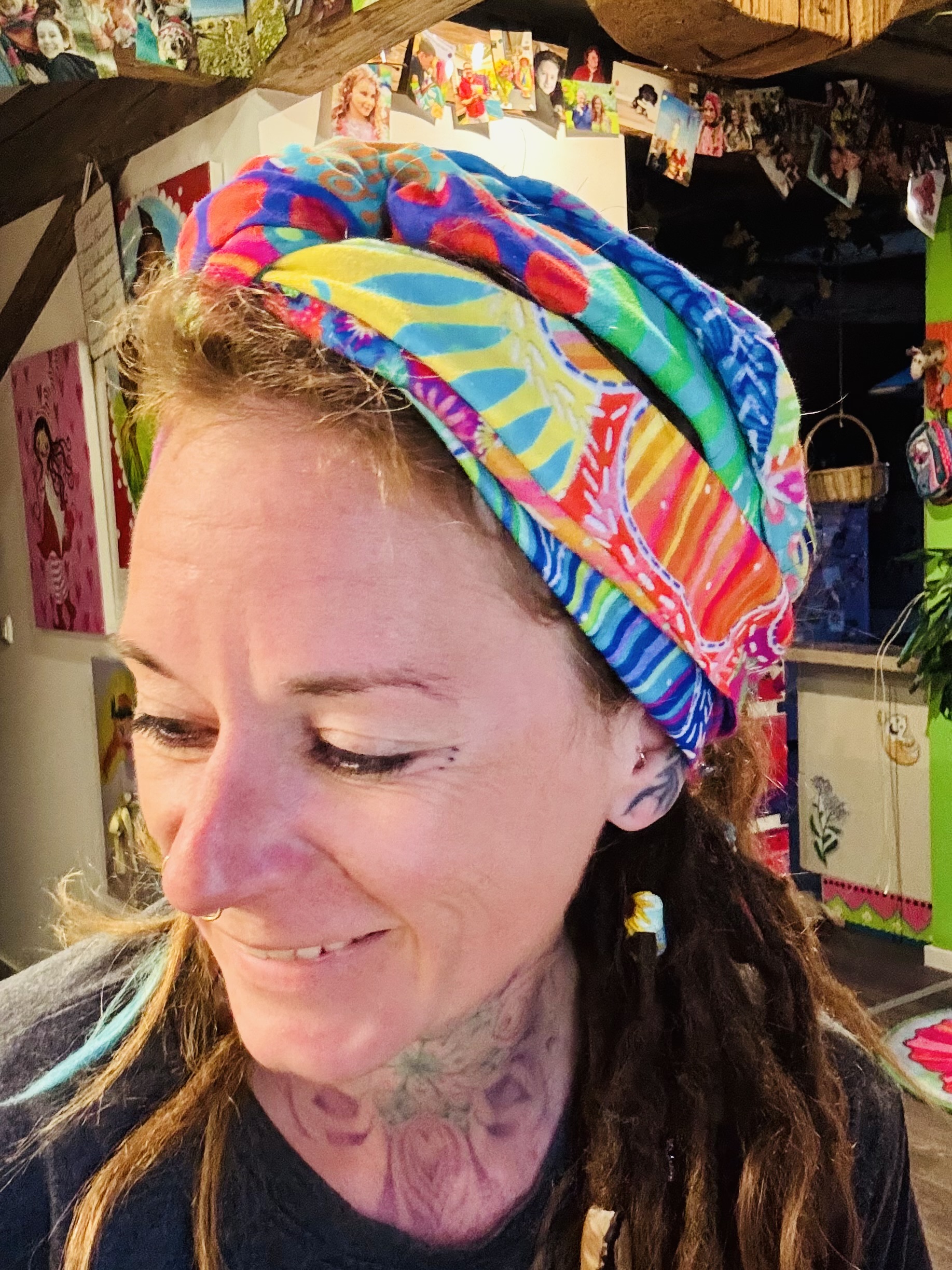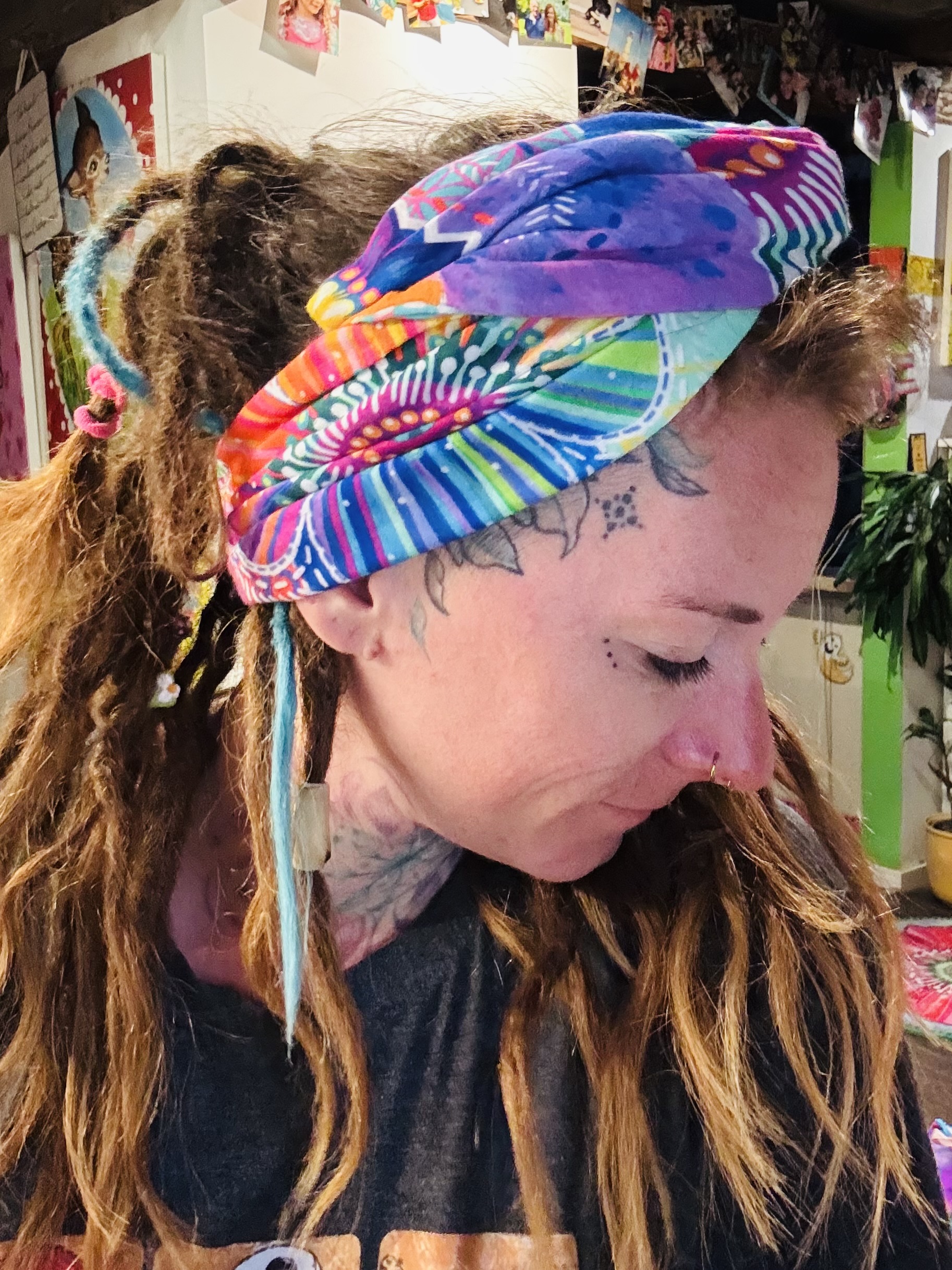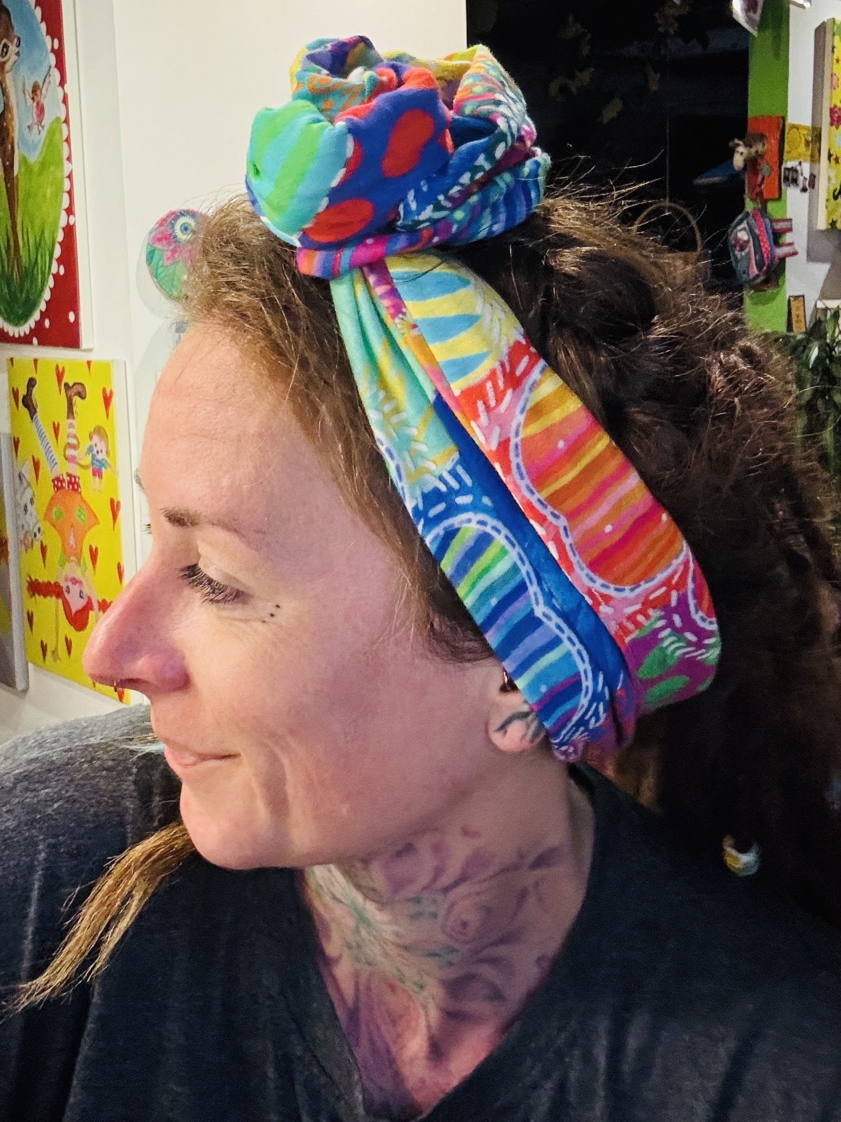Du kannst es dir einfach beginnend am Hinterkopf anlegen und je nach Bedarf vorne zusammenzwirbeln.
