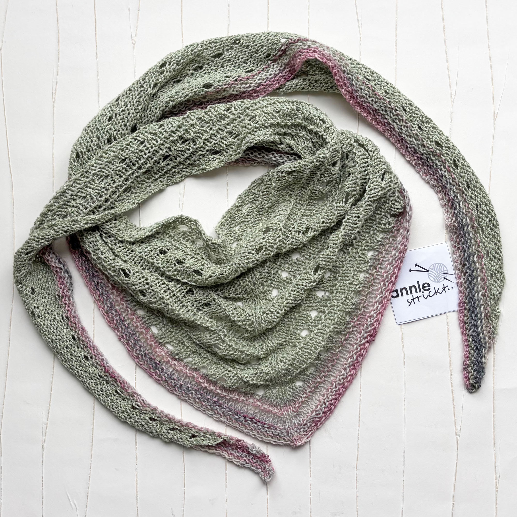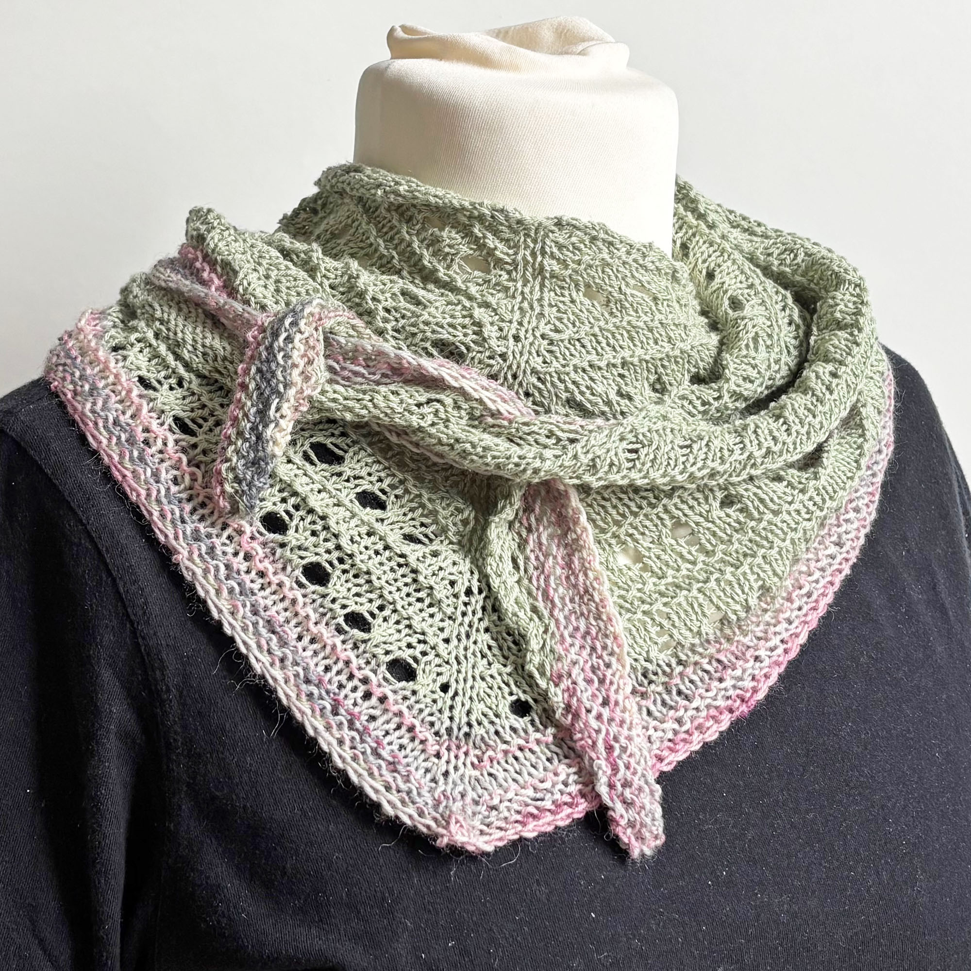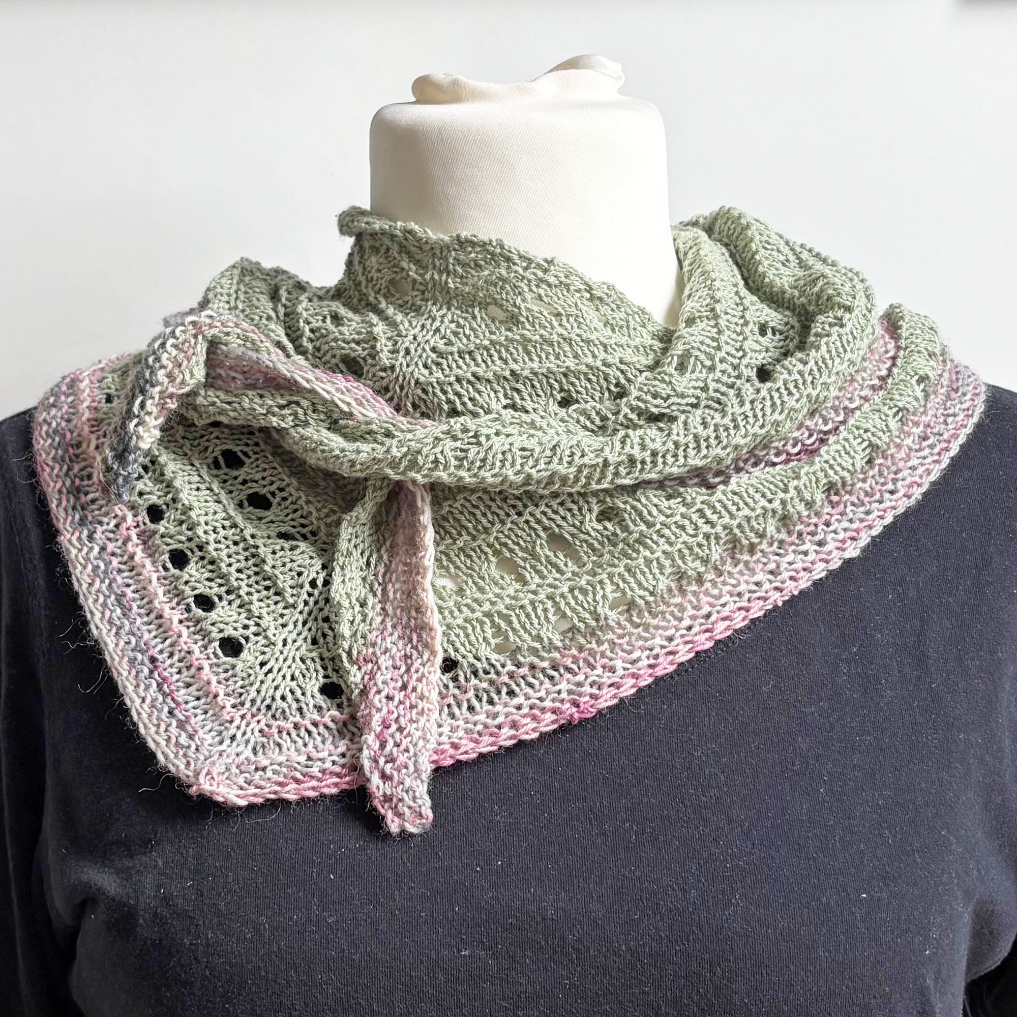 - Dreieckstuch in Lochmustermix handgestrickt mit einer schmalen farblich passenden Zierkante