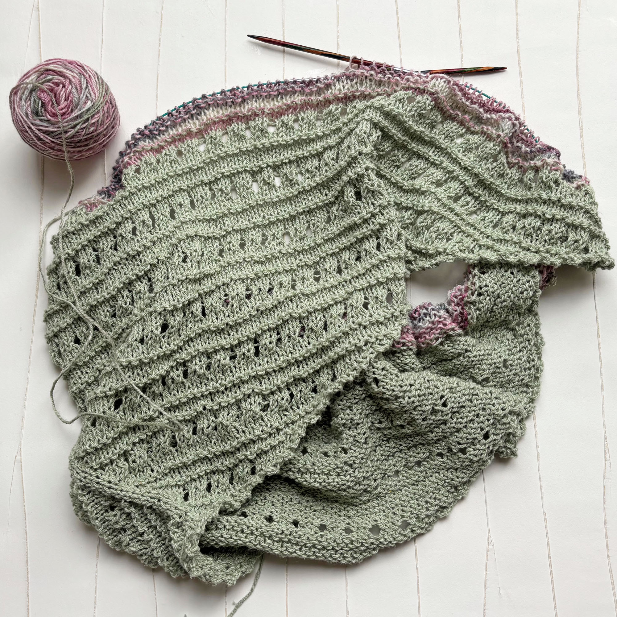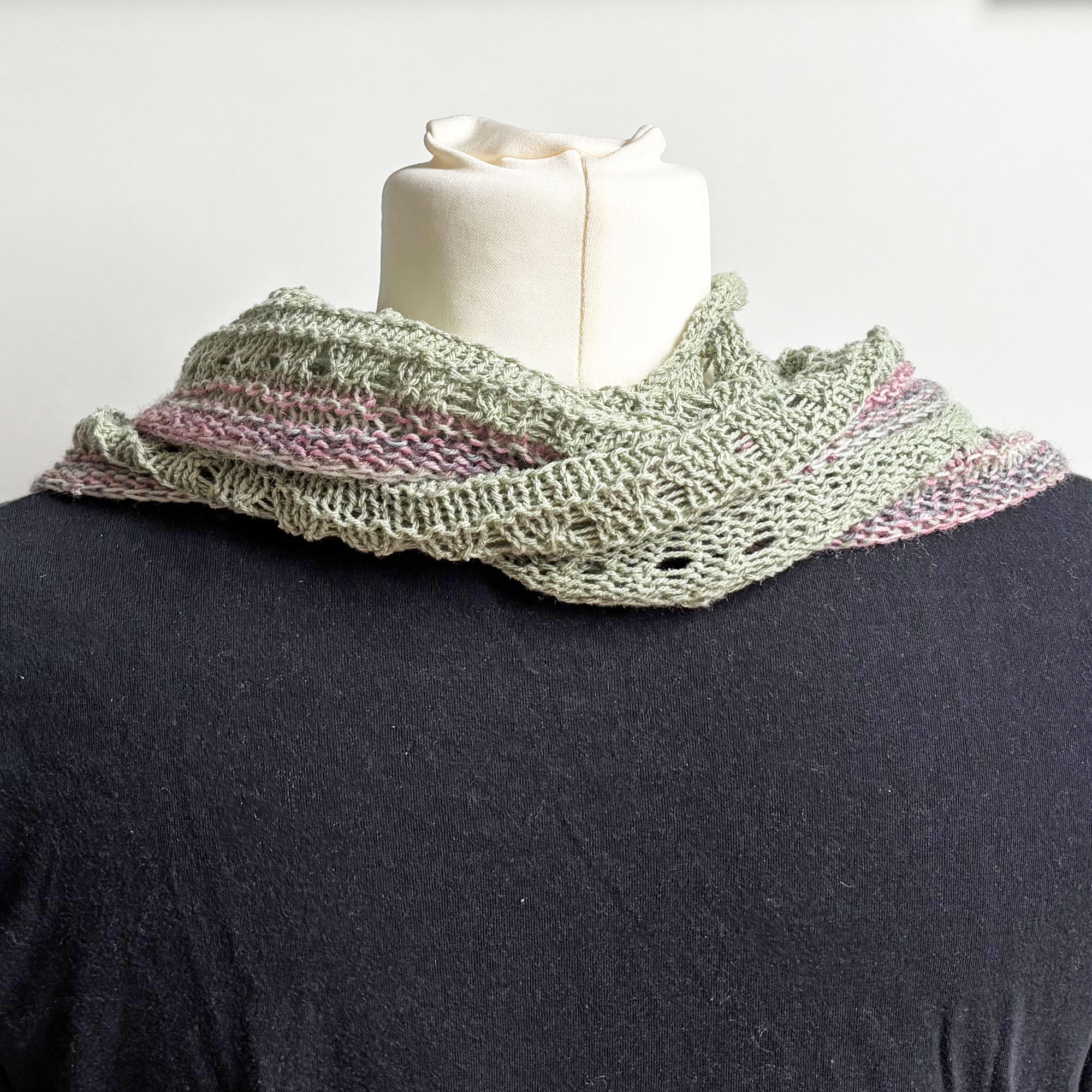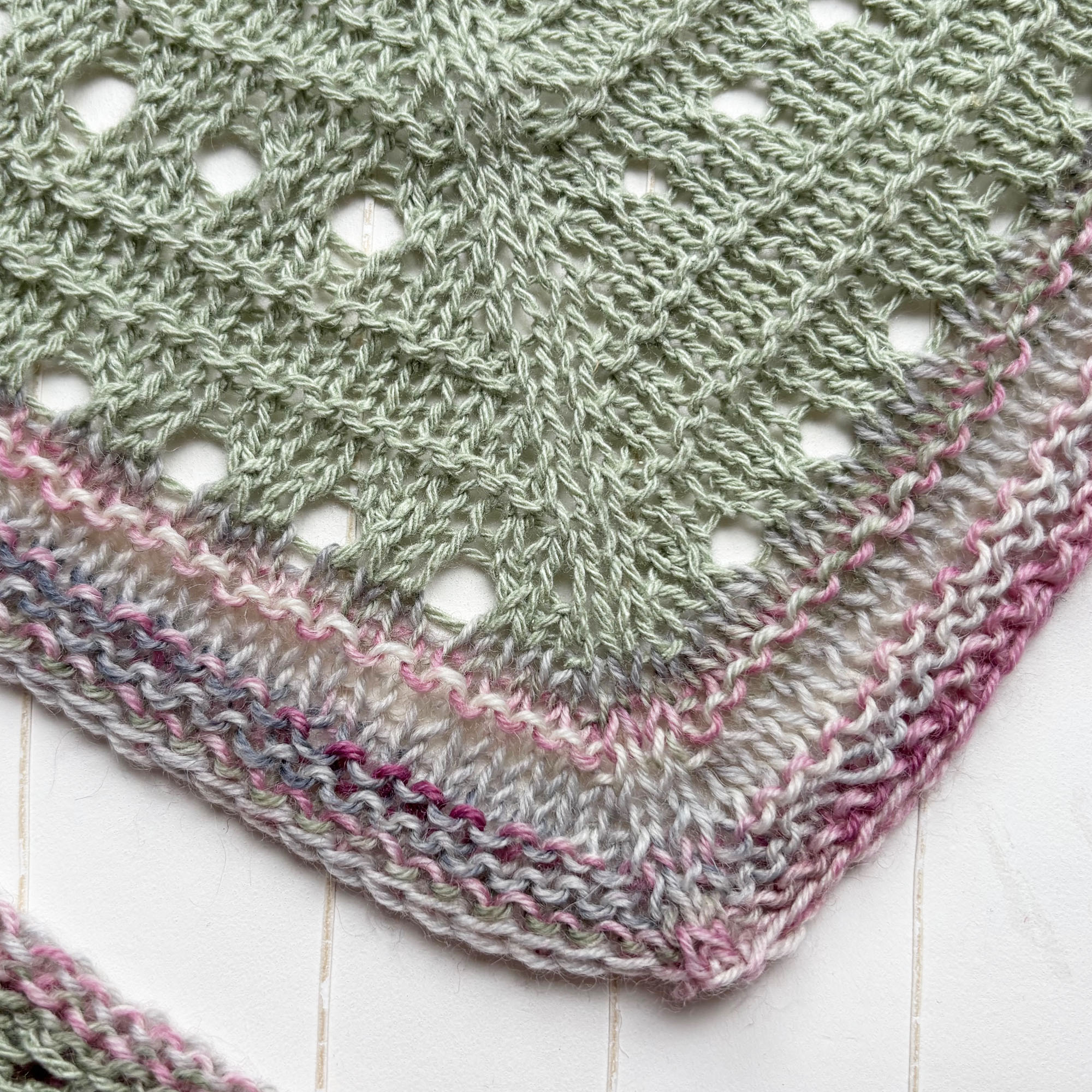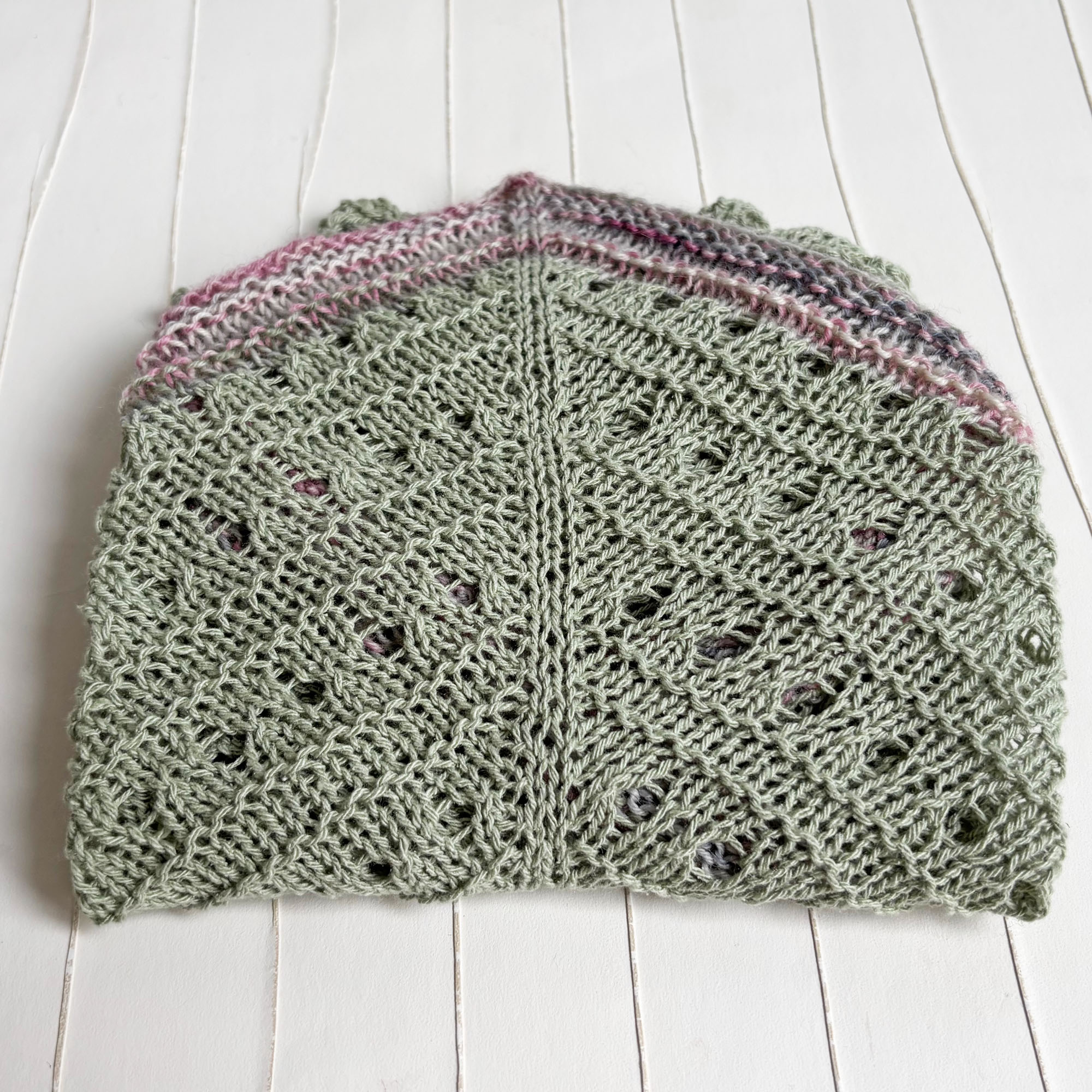 - Dreieckstuch in Lochmustermix handgestrickt mit einer schmalen farblich passenden Zierkante