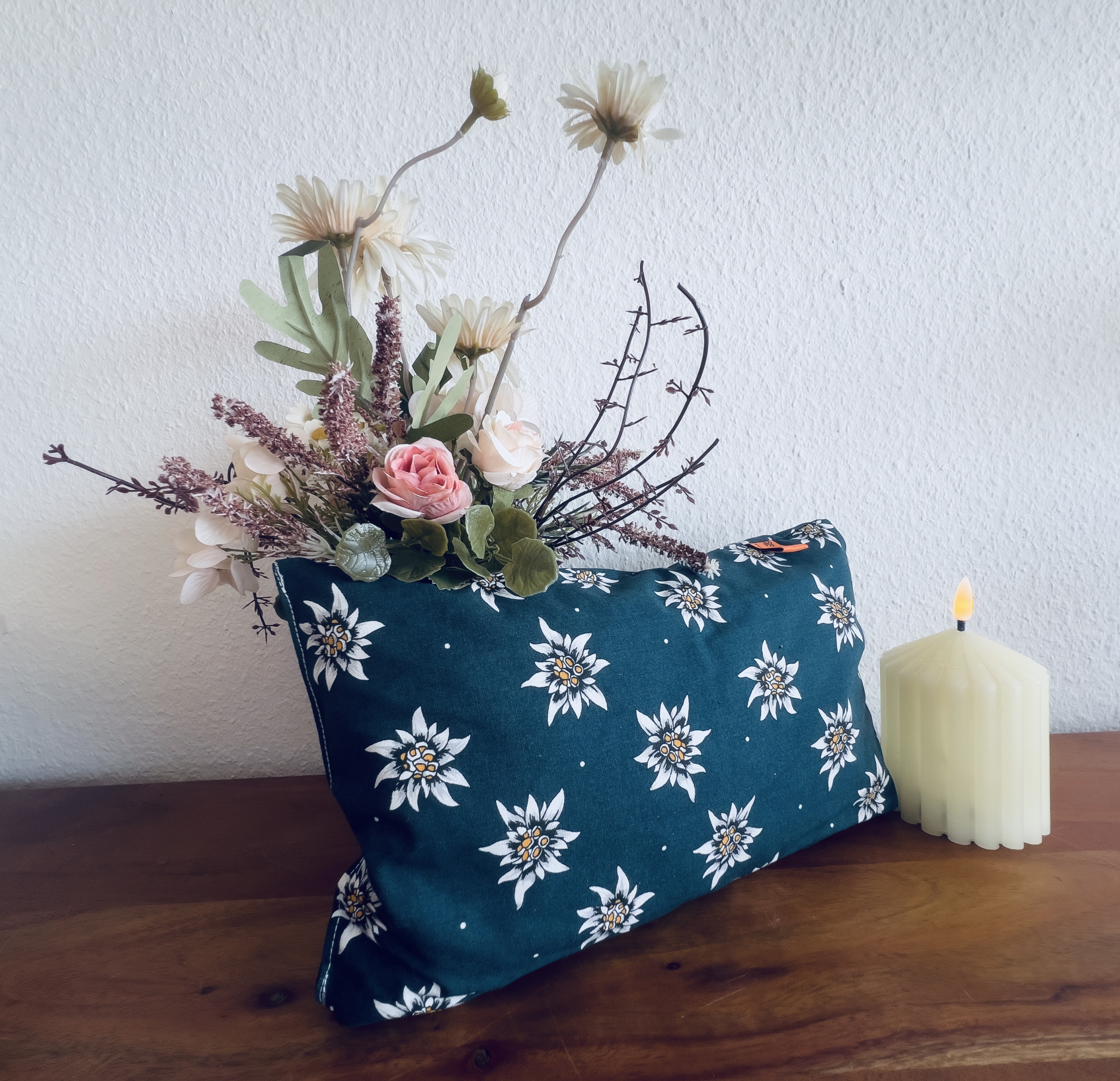 Ich fertige dieses duftende Zirbenkissen in liebevoller Handarbeit im Allgäu – einem Ort, an dem Natur, Ruhe und echtes Handwerk noch spürbar sind.