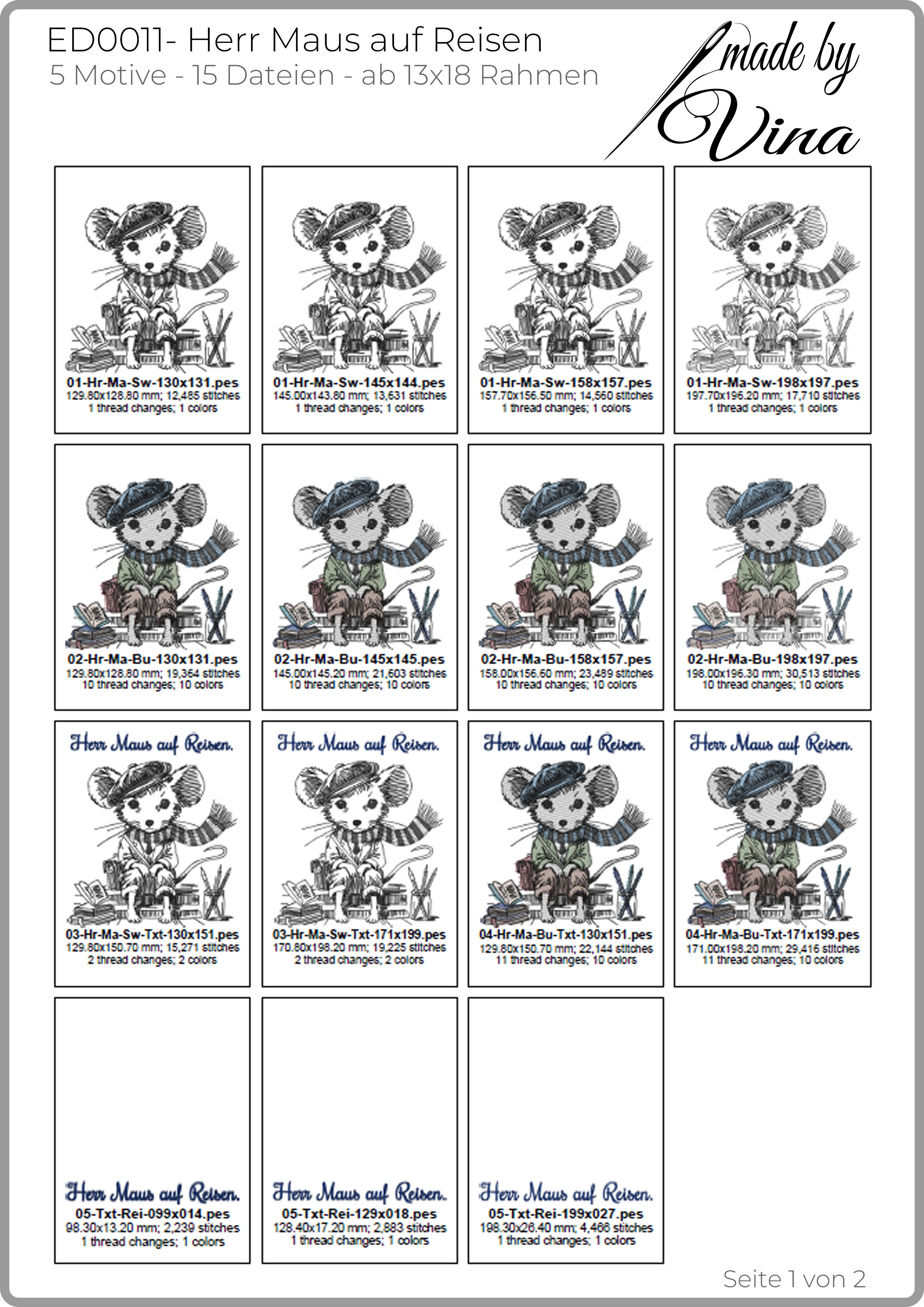 Stickdatei-Set „ED0011 – Herrr Maus auf Reisen“ – skizzenhaft & detailverliebt