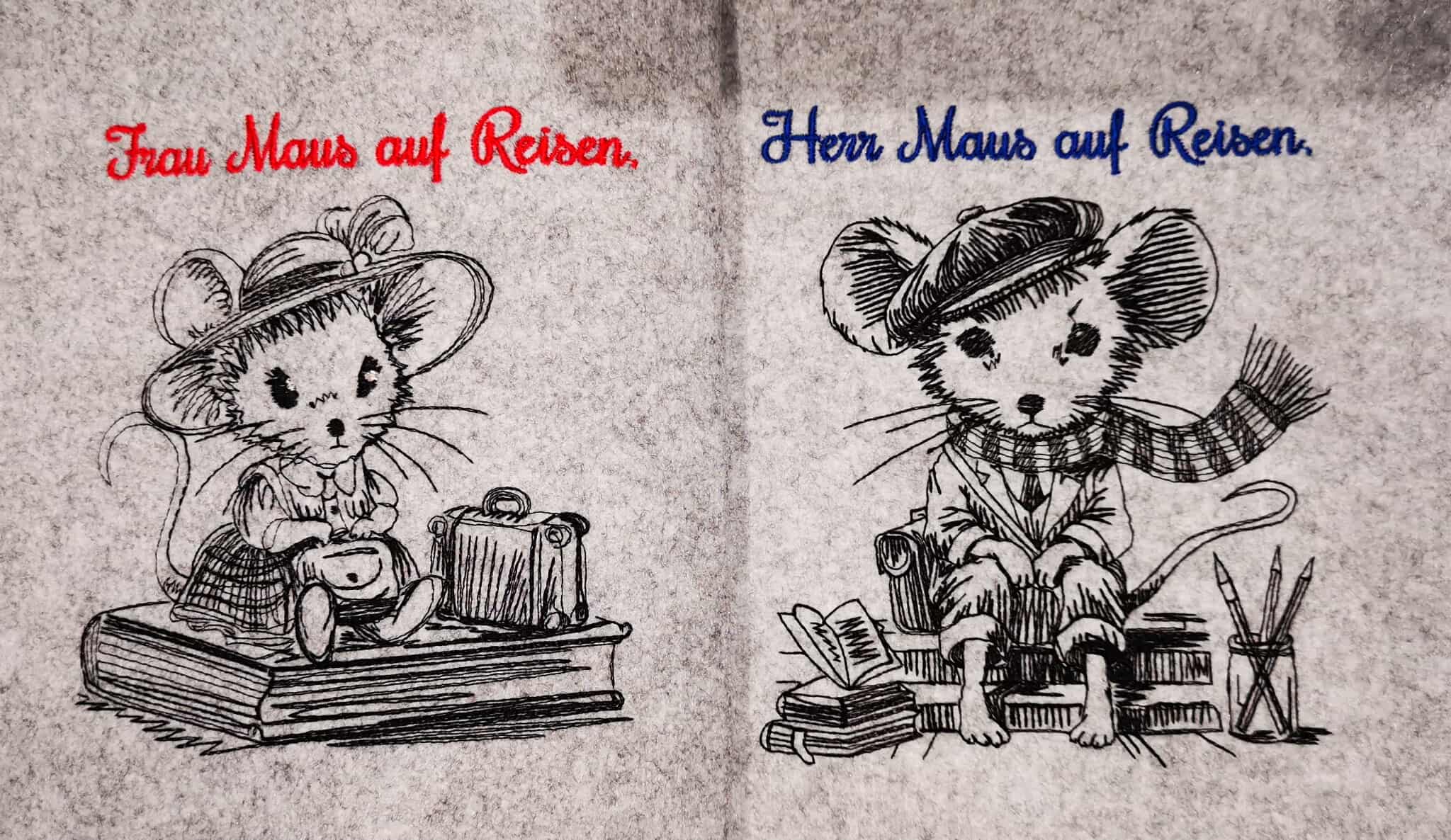 Stickdatei-Set „ED0013 – Herr und Frau Maus auf Reisen“ – skizzenhaft & detailverliebt
