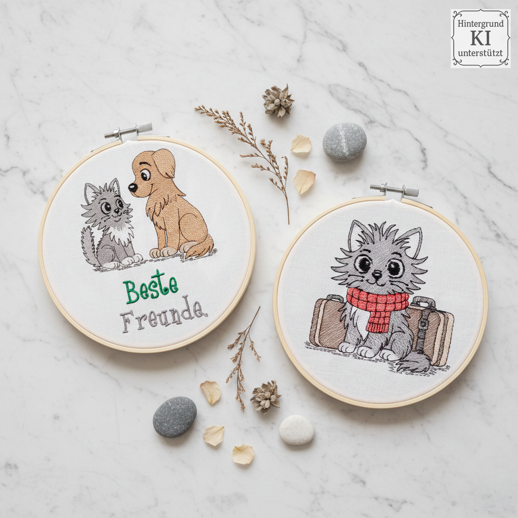 Dieses Design ist ein Herzensprojekt und wurde in Kooperation mit Doro Schulenberg erstellt. Dieses Set ist das Ergebnis einer wunderbaren Zusammenarbeit: Doros kreative Entwürfe und Digitalisierungen kombiniert mit meiner technischen Umsetzung / Digitalisierung und dem Feinschliff ergeben einzigartige und mit Herz gestaltete Stickdateien.