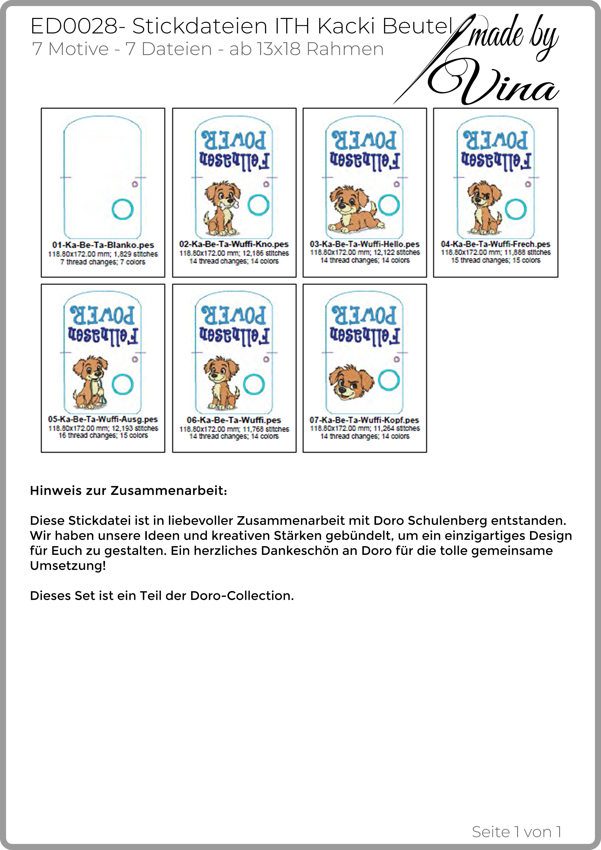 Dieses Design ist ein Herzensprojekt und wurde in Kooperation mit Doro Schulenberg erstellt. Dieses Set ist das Ergebnis einer wunderbaren Zusammenarbeit: Doros kreative Entwürfe und Digitalisierungen kombiniert mit meiner technischen Umsetzung / Digitalisierung und dem Feinschliff ergeben einzigartige und mit Herz gestaltete Stickdateien.